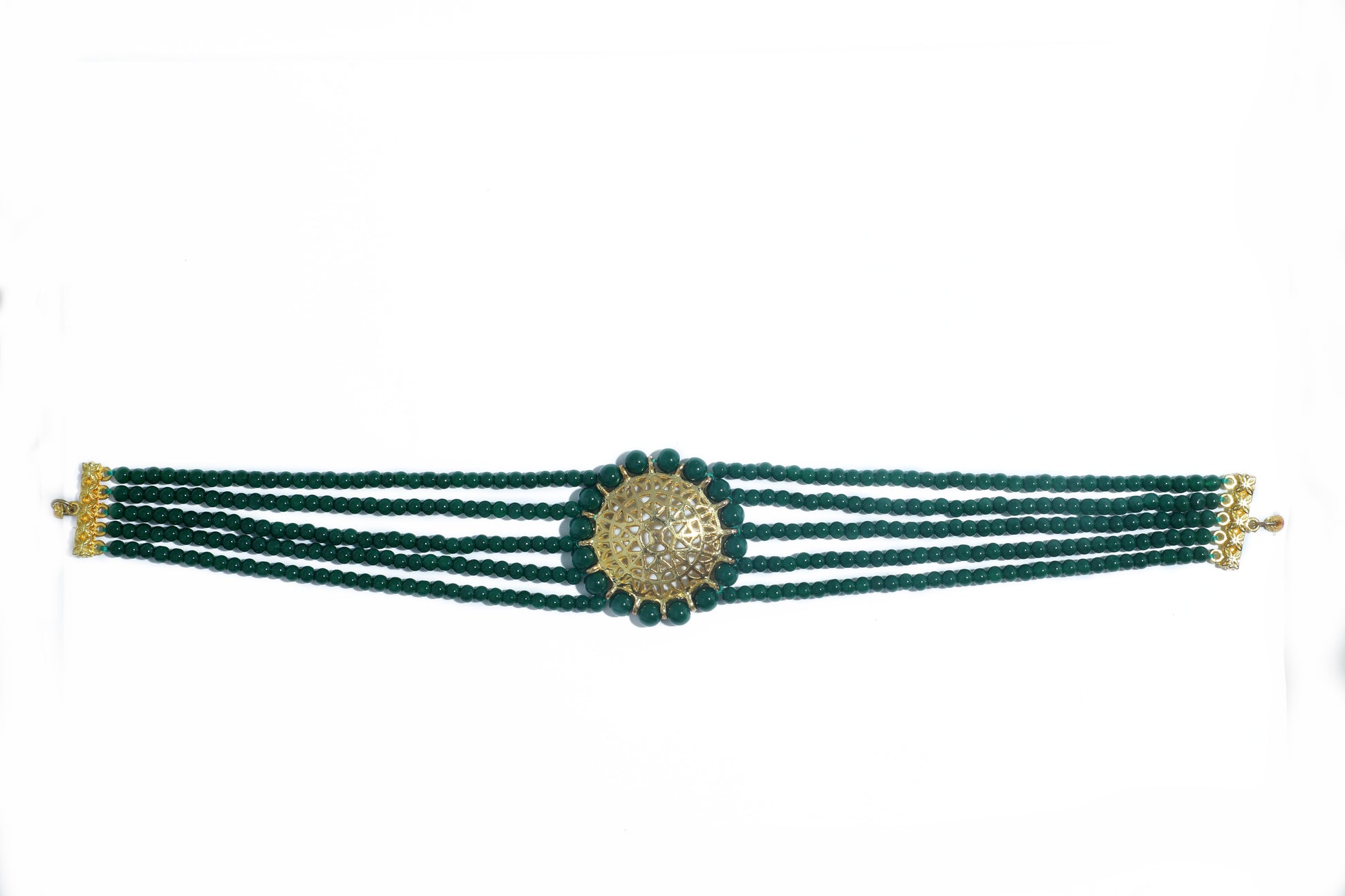 - Look Stylish with this Dark Green Beaded Necklace Set. Best when paired with Indian, Indo Western or Western Attire. Made with Internationally approved skin friendly material, this set is a must have for your collection.