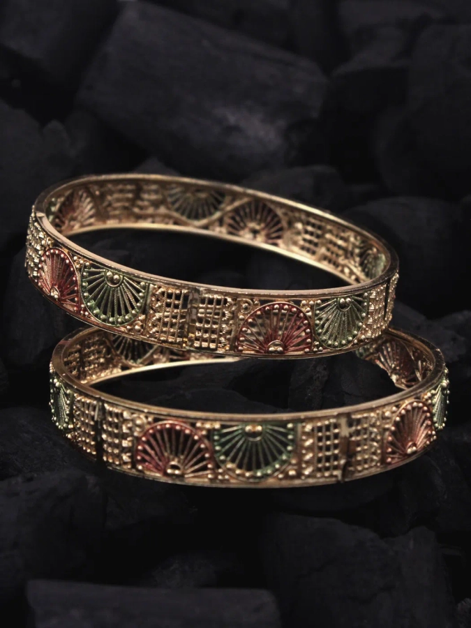 - Gold Plated Pink Stone Bangle for Women. Available in 3 sizes 2-4 inches, 2-6 inches, and 2-8 inches.