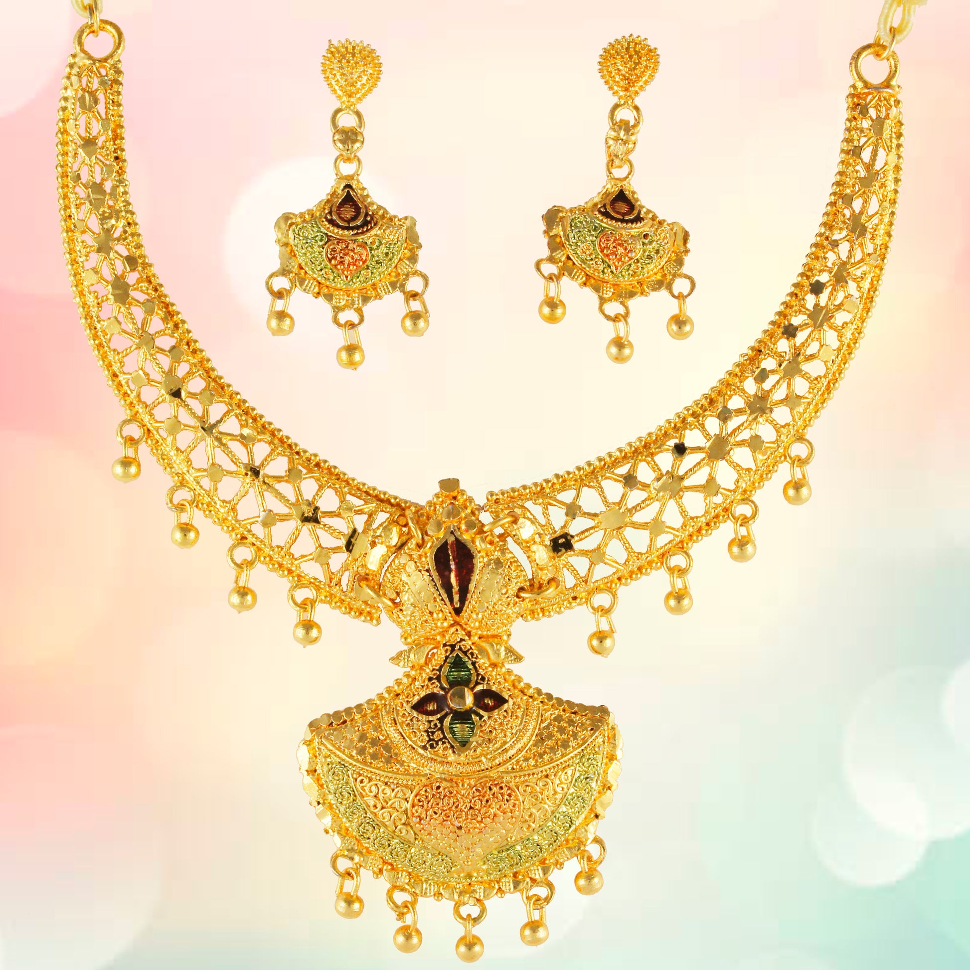 • One Gram Gold Plating on Nickle and Lead Free Metal for exact Like Original Gold Jewellery look