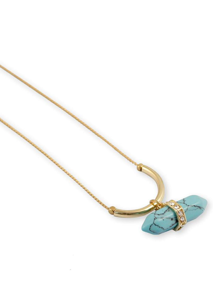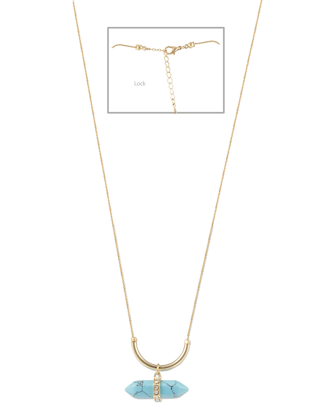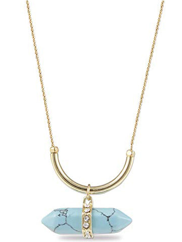 - Gold Long Chain Blue Turquoise Necklace