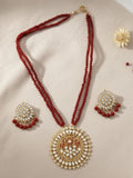 Gold Plated Antique Red Kundan Rani Haar Beaded Pendant Set