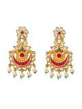 Gold Plated Pearl Beads Red Kundan Chandbali Earrings