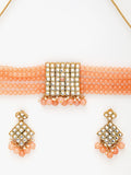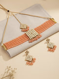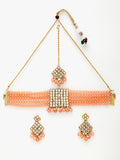 Gold-Plated Embellished Kundan and Peach Beads Handcrafted Choker Necklace Set