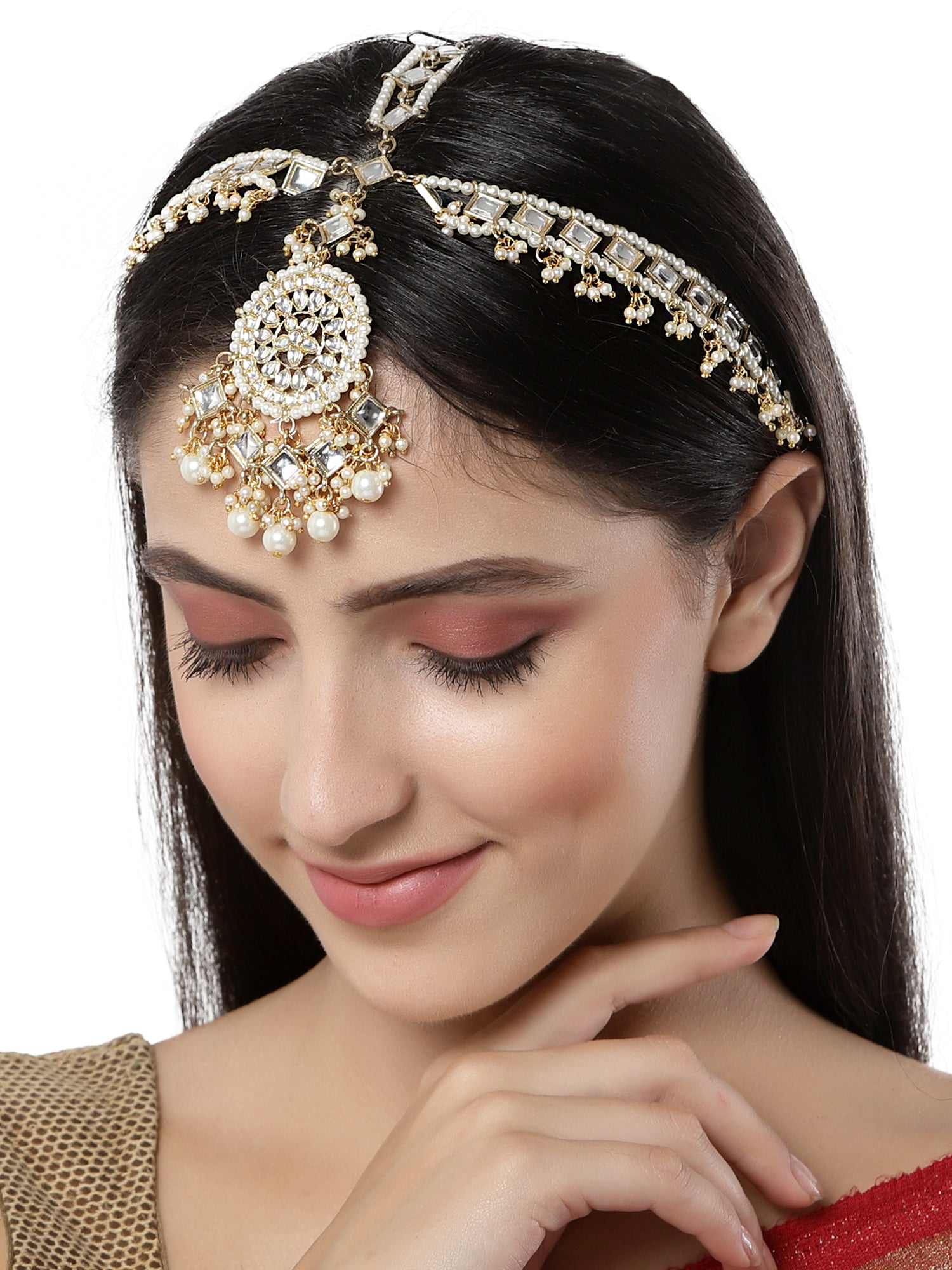 - Gold Plated Handcrafted Kundan Mathapatti for Women. It's Five Layer Embellished with Kundan for High Durability. Intricate high polish creates glamorous reflections and adds a luxurious look. Perfect for Weddings, Festivals, Traditional Occasions. Best when paired with any Indian outfit.
