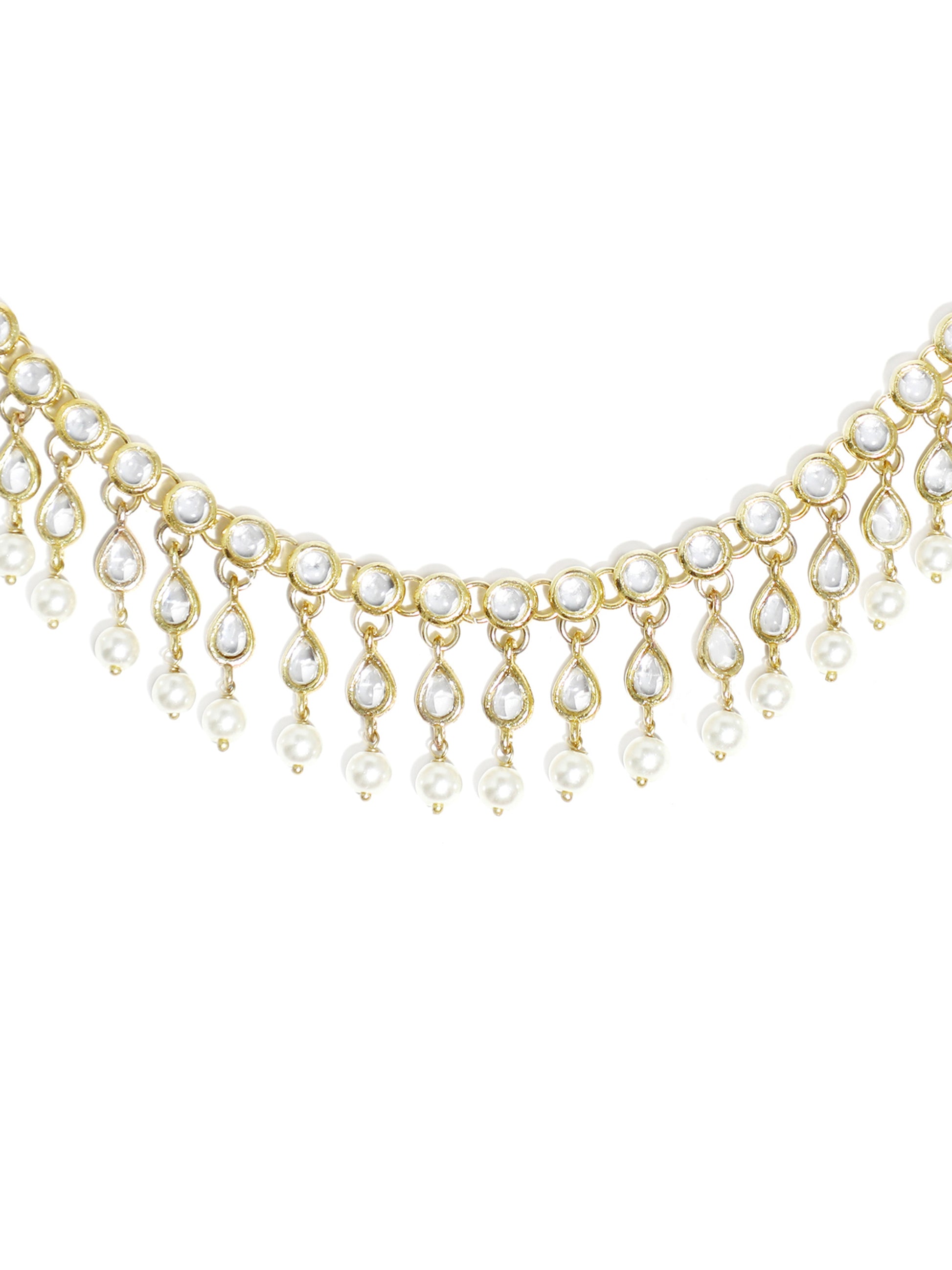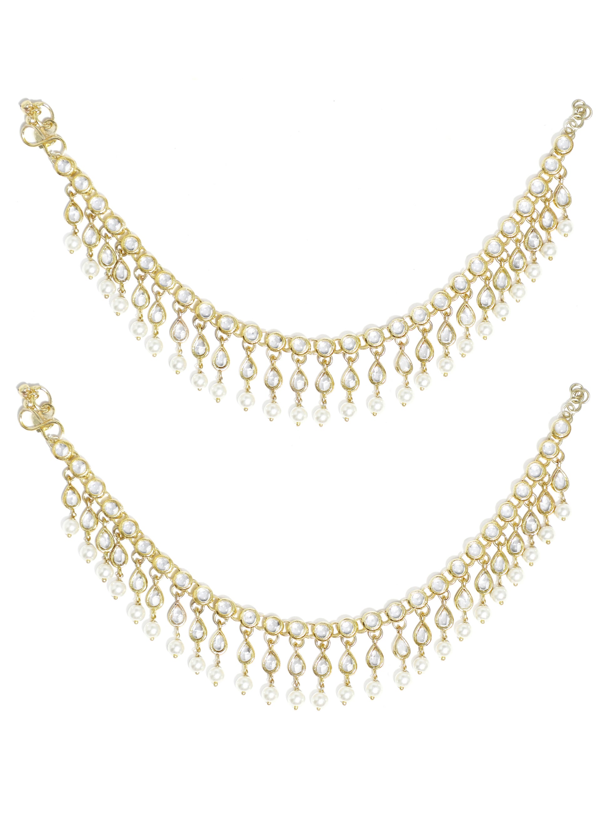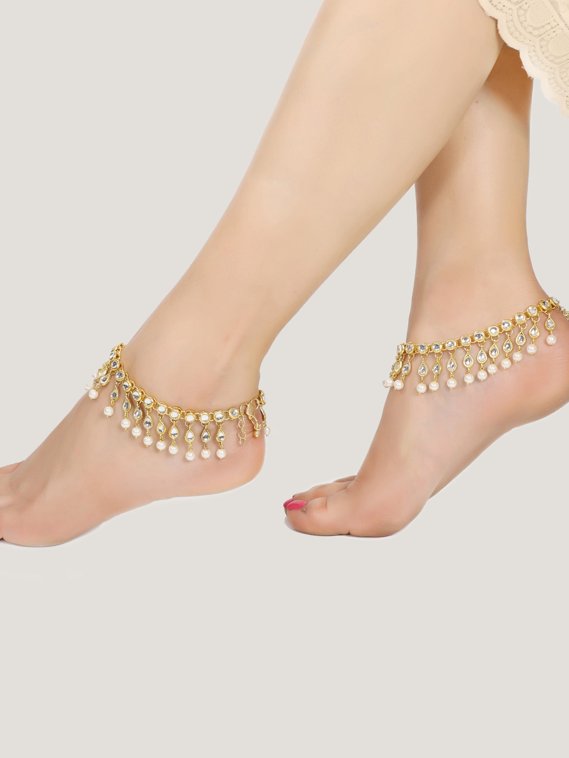 - Gold-Plated Kundan & Pearls Studded Anklets. Made by joining small Kundan's together it has super flexibility and can be worn by women of every foot size. If you are an Anklet Fan this is just the right product for you.