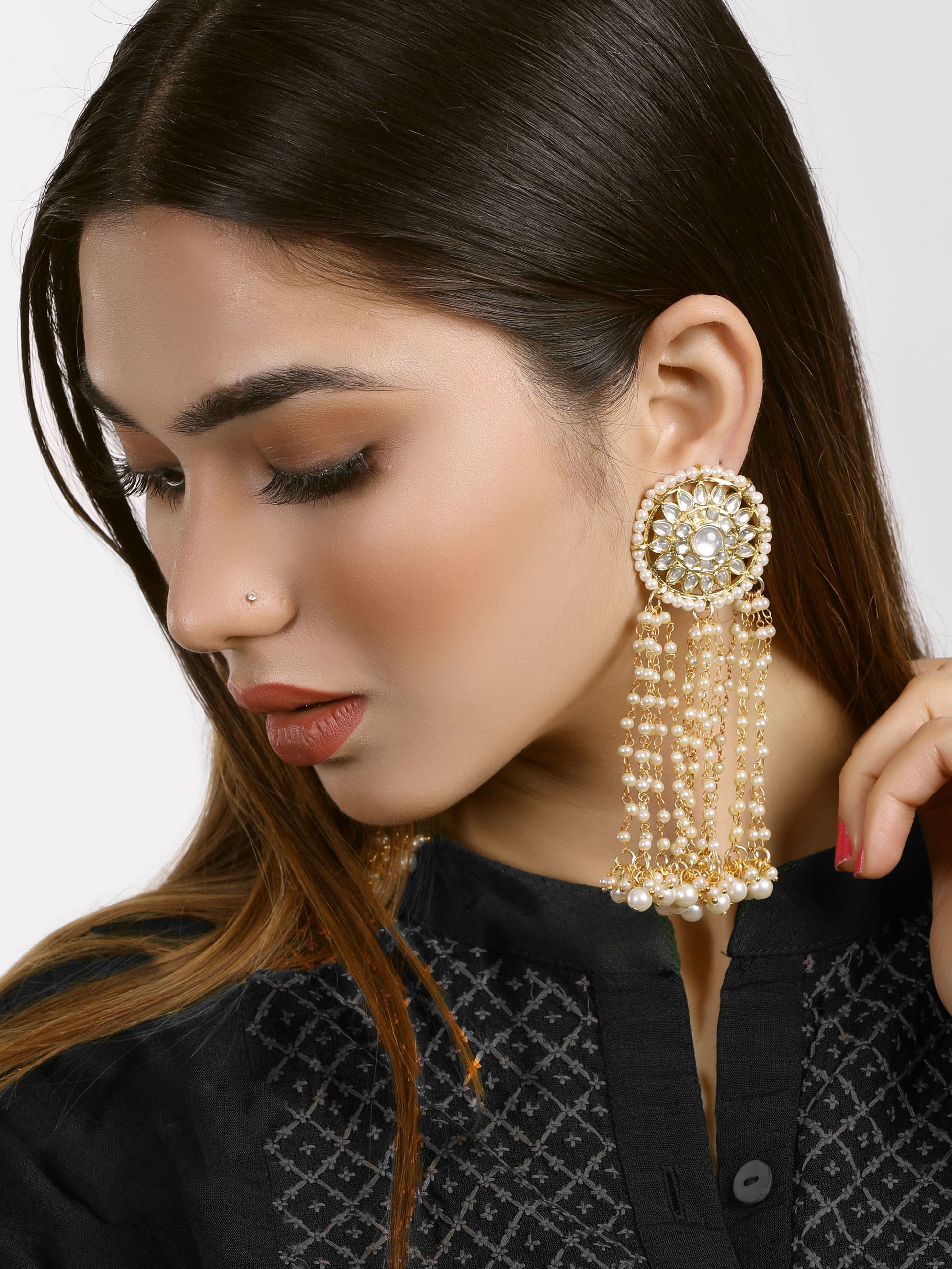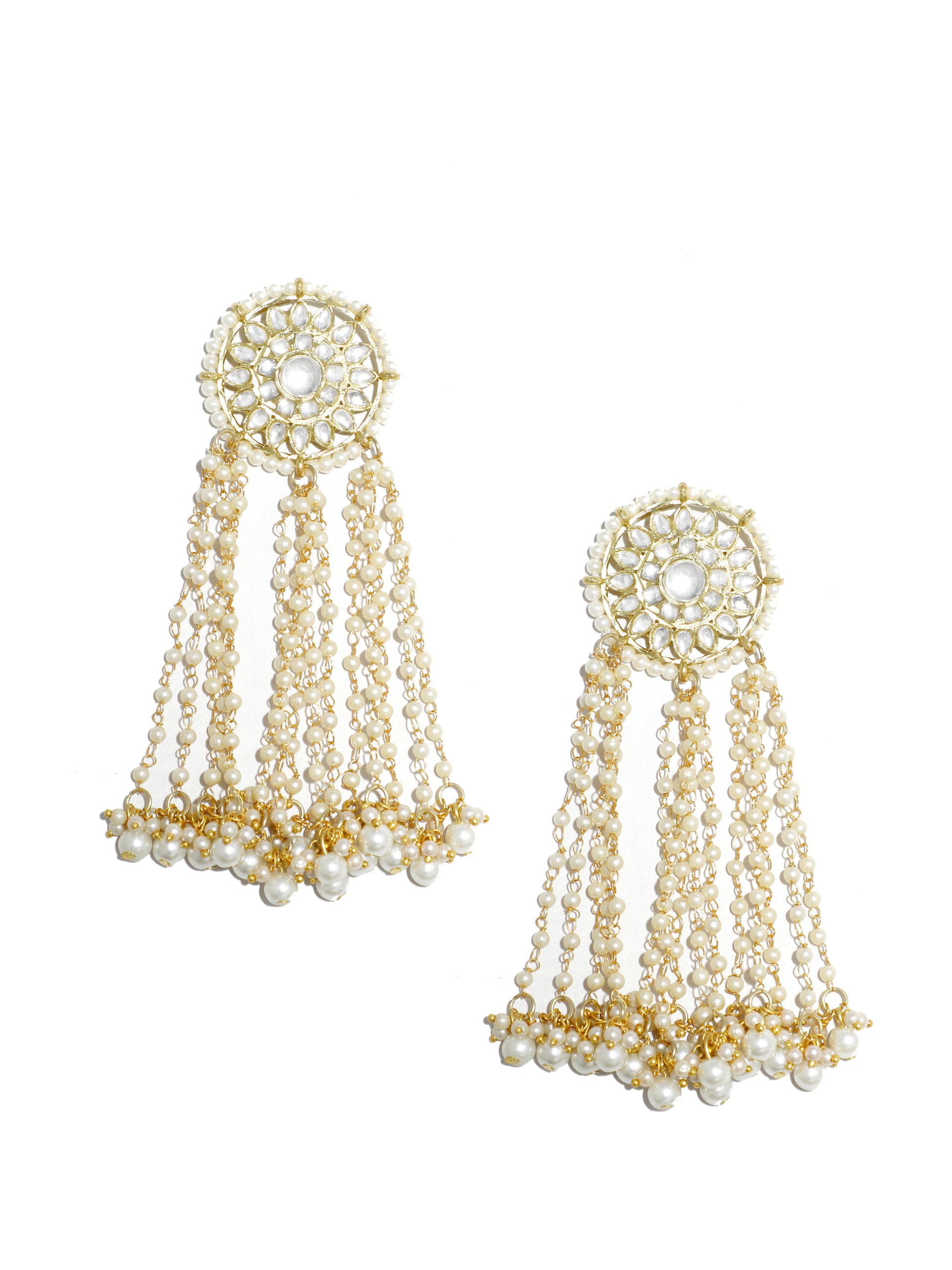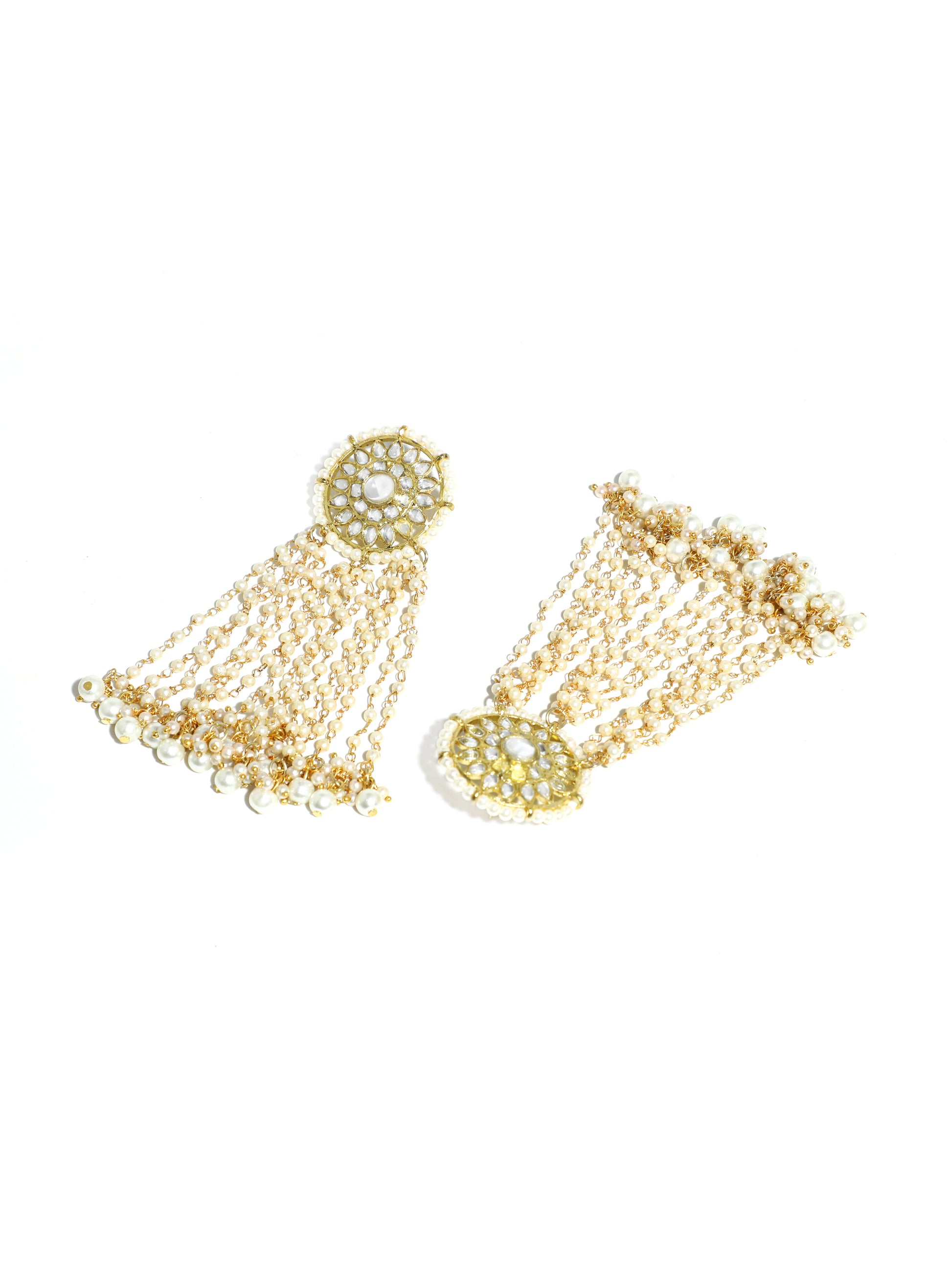 Gold Plated Pearl Beads Kundan Tassel Earrings