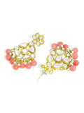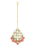 Gold Plated Pink Beads Kundan Dangler Earrings with Maangtikka