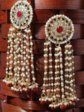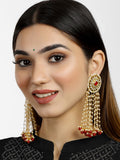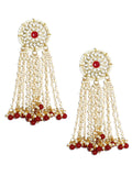 Gold Plated Red Beads Kundan Tassel Earrings