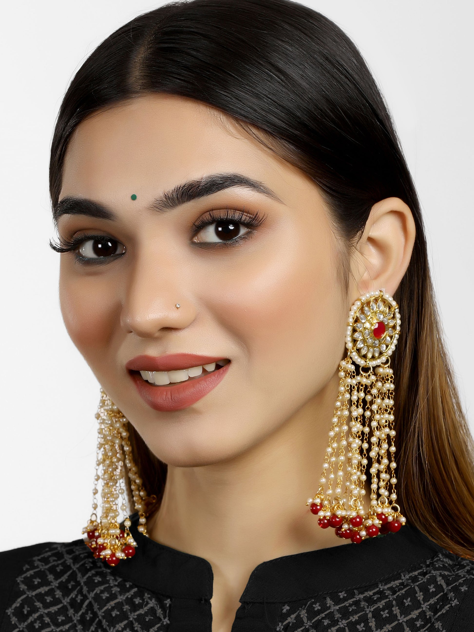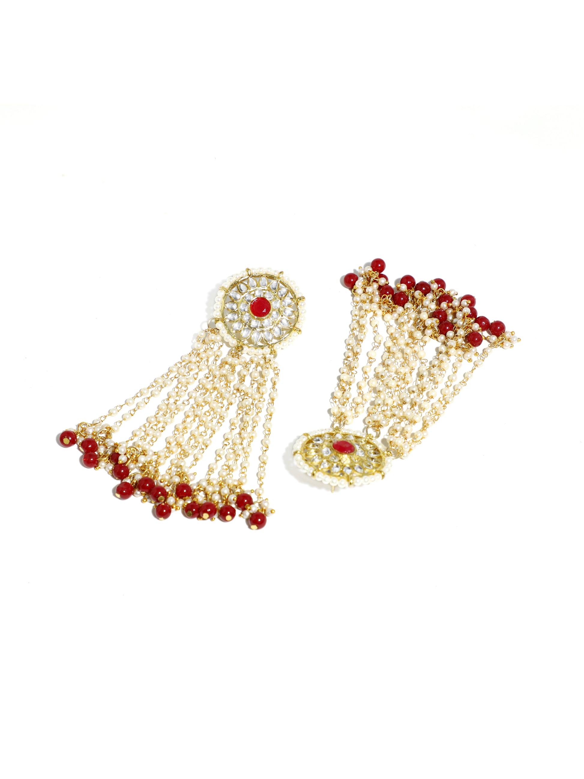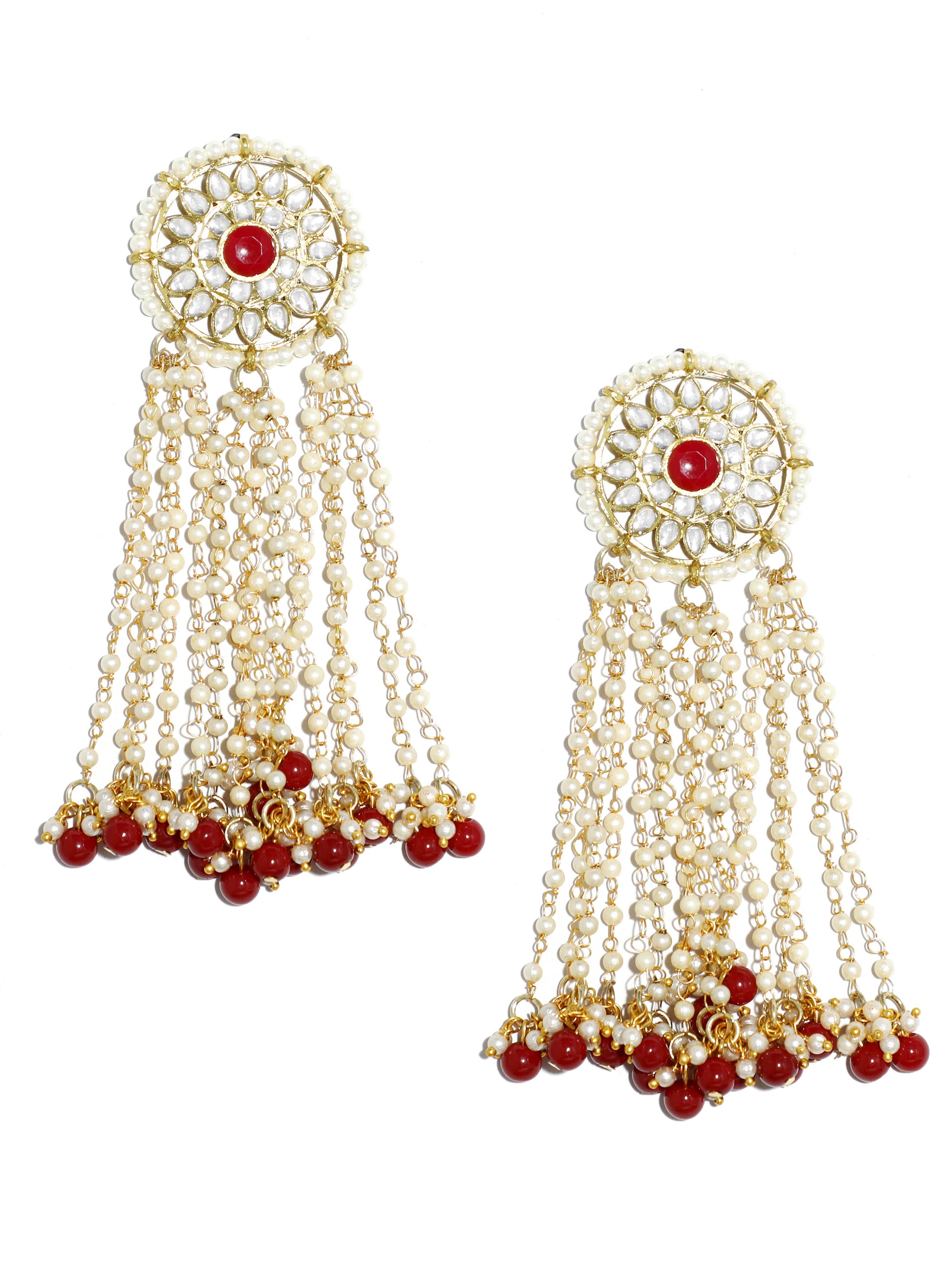 - Gold Plated Red Beads Kundan Tassel Earrings. It's Five Layer Micro Gold Plated and Embellished with Kundan for High Durability. Intricate high polish creates glamorous reflections and adds a luxurious look. Perfect for Weddings, Festivals, Traditional Occasions. Best when paired with any Indian or Indo Western Attire.