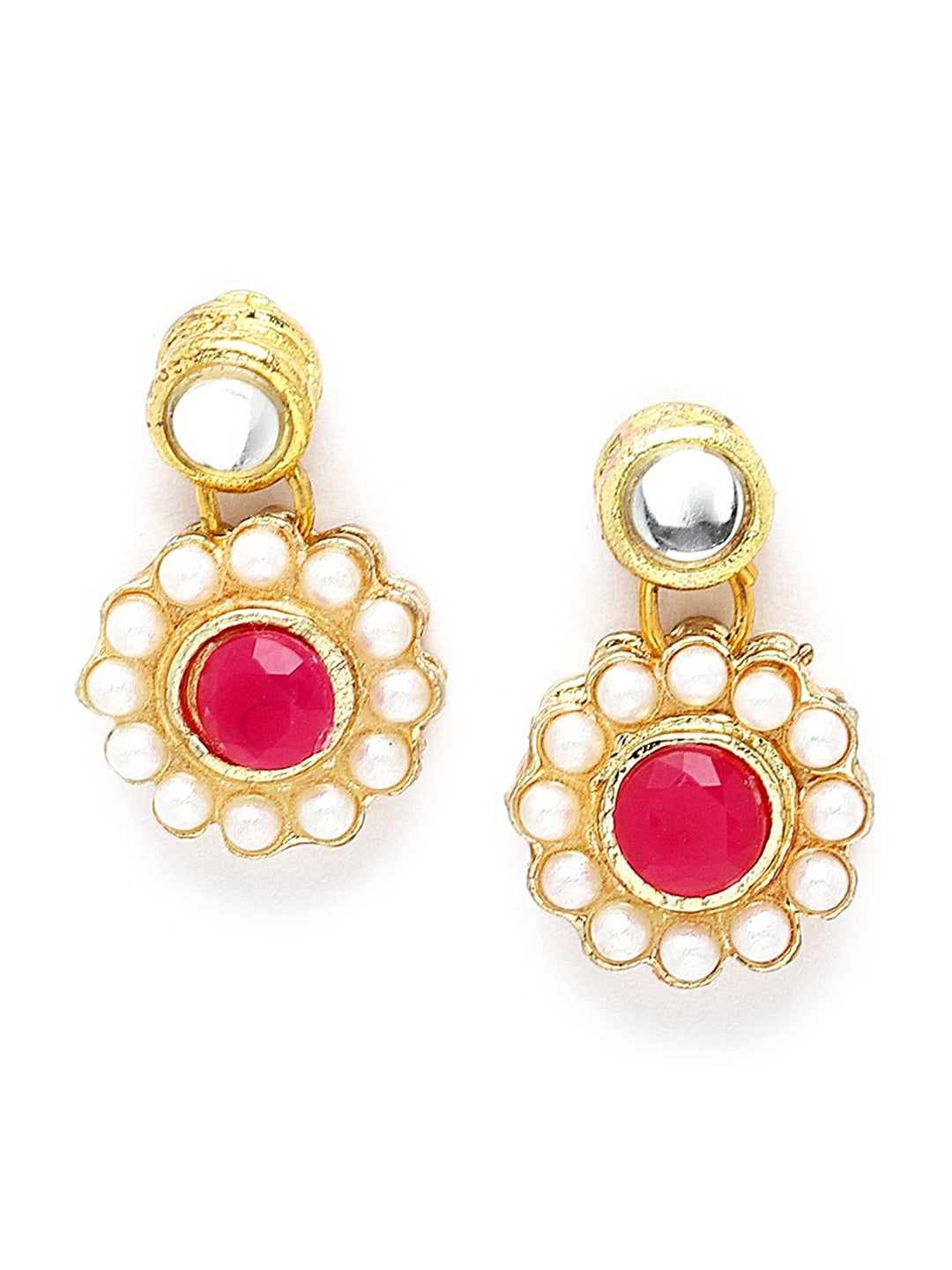 A pair of matching drop earrings, each secured with a post-and-back closure