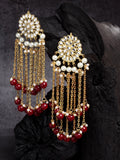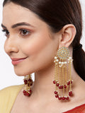 Gold Plated Red Kundan Tassel Earrings