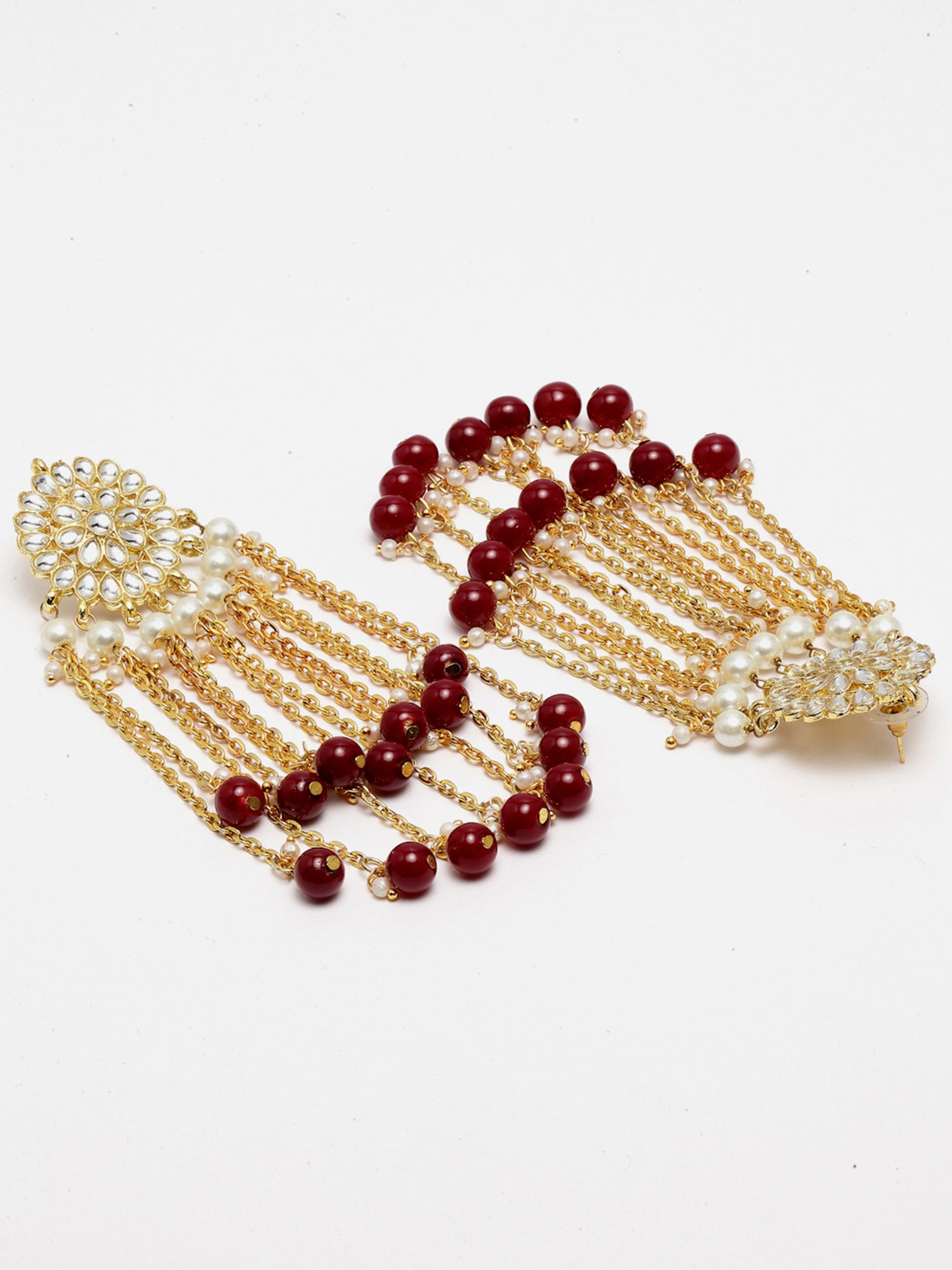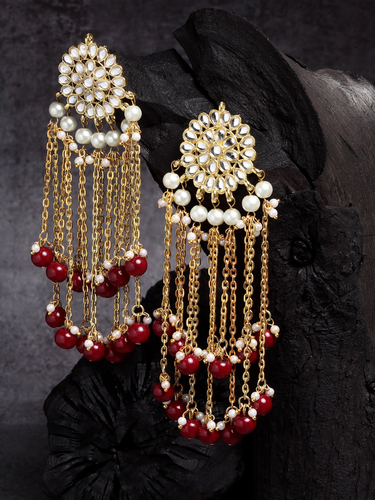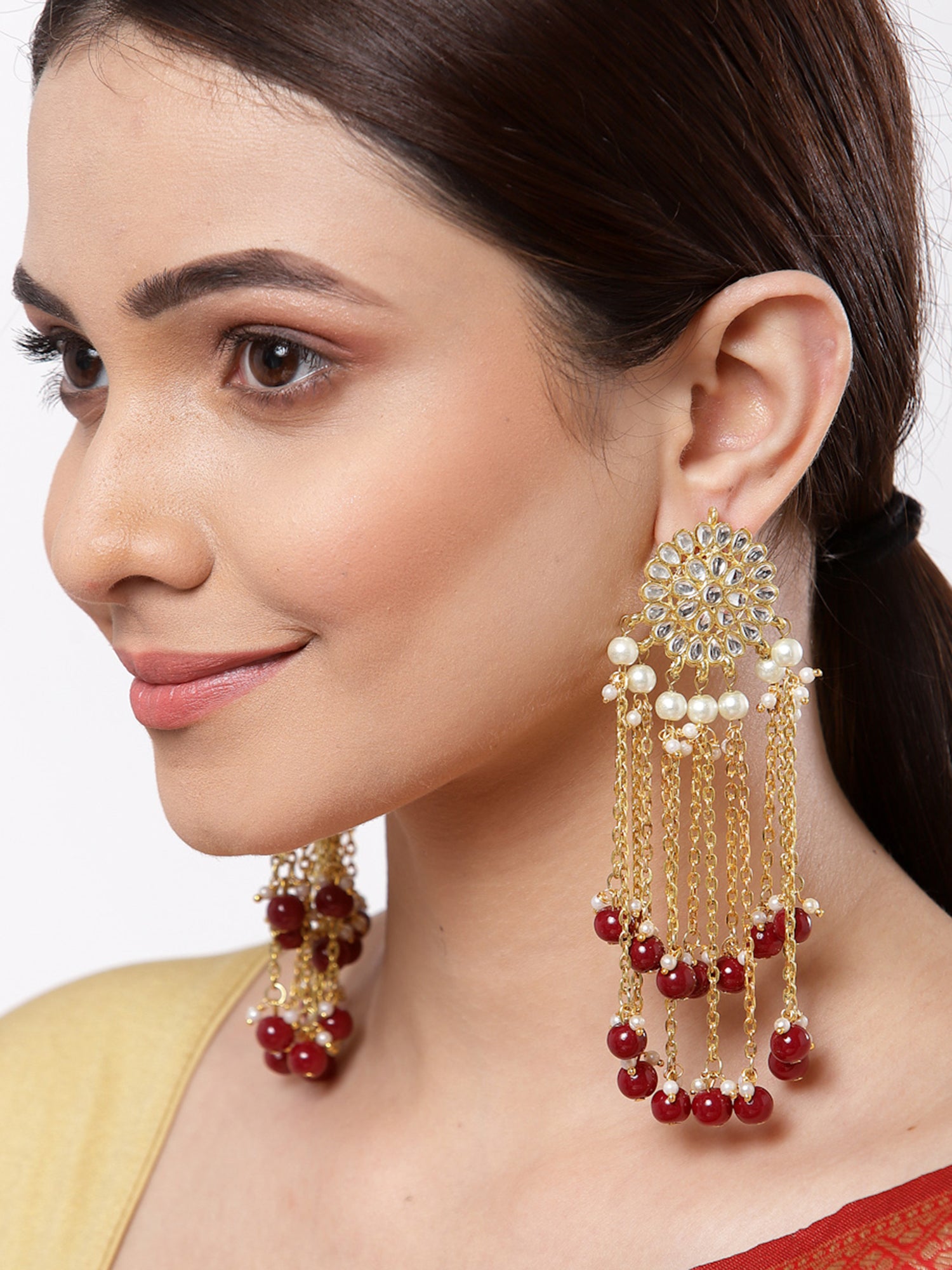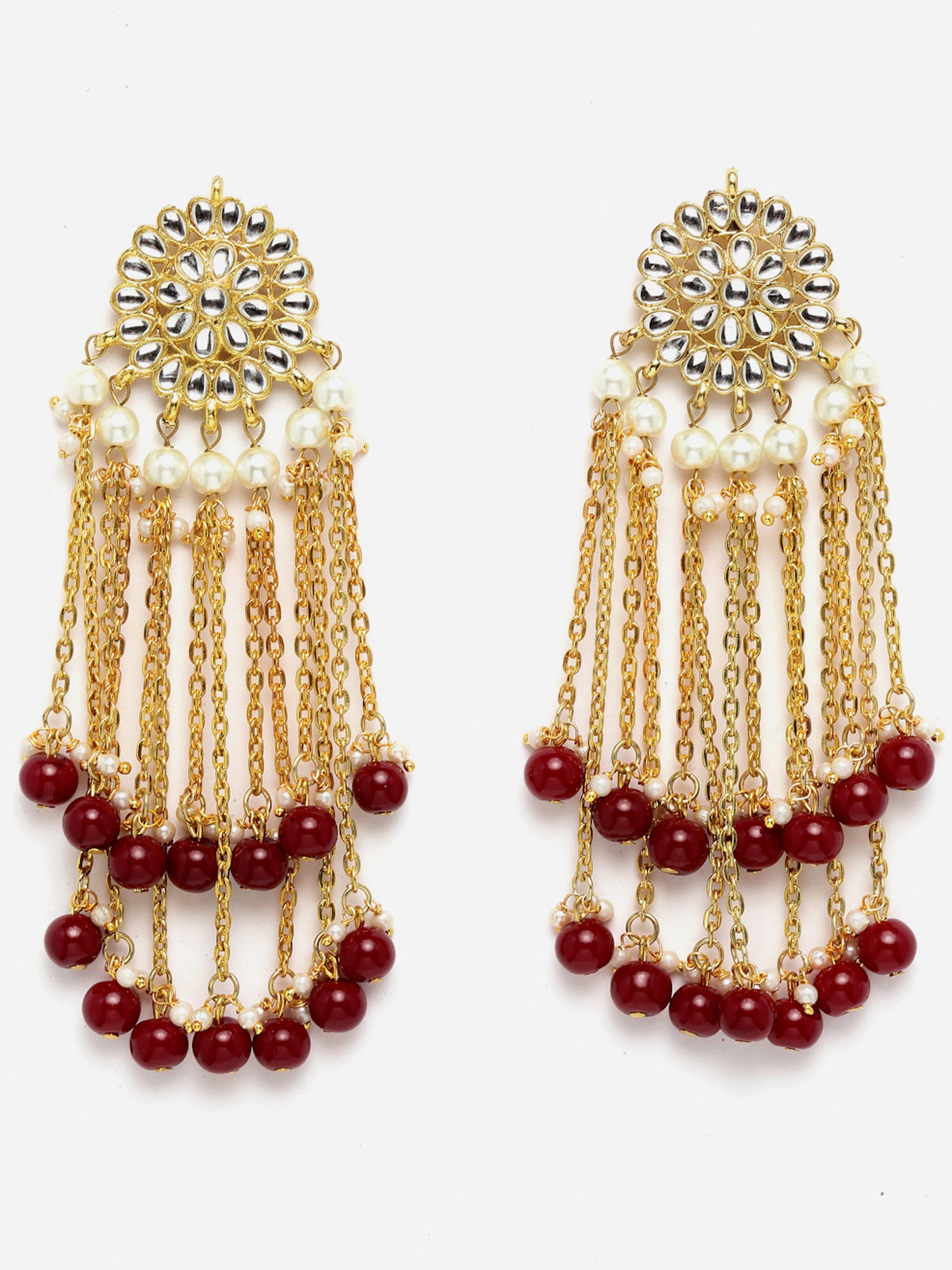 - Gold Plated Red Kundan Tassel Earrings. It's Five Layer Micro Gold Plated and Embellished with Elegant Kundan for High Durability. Intricate high polish creates glamorous reflections and adds a luxurious look. Perfect for Weddings, Festivals, Traditional Occasions. Best when paired with any Indian outfit.