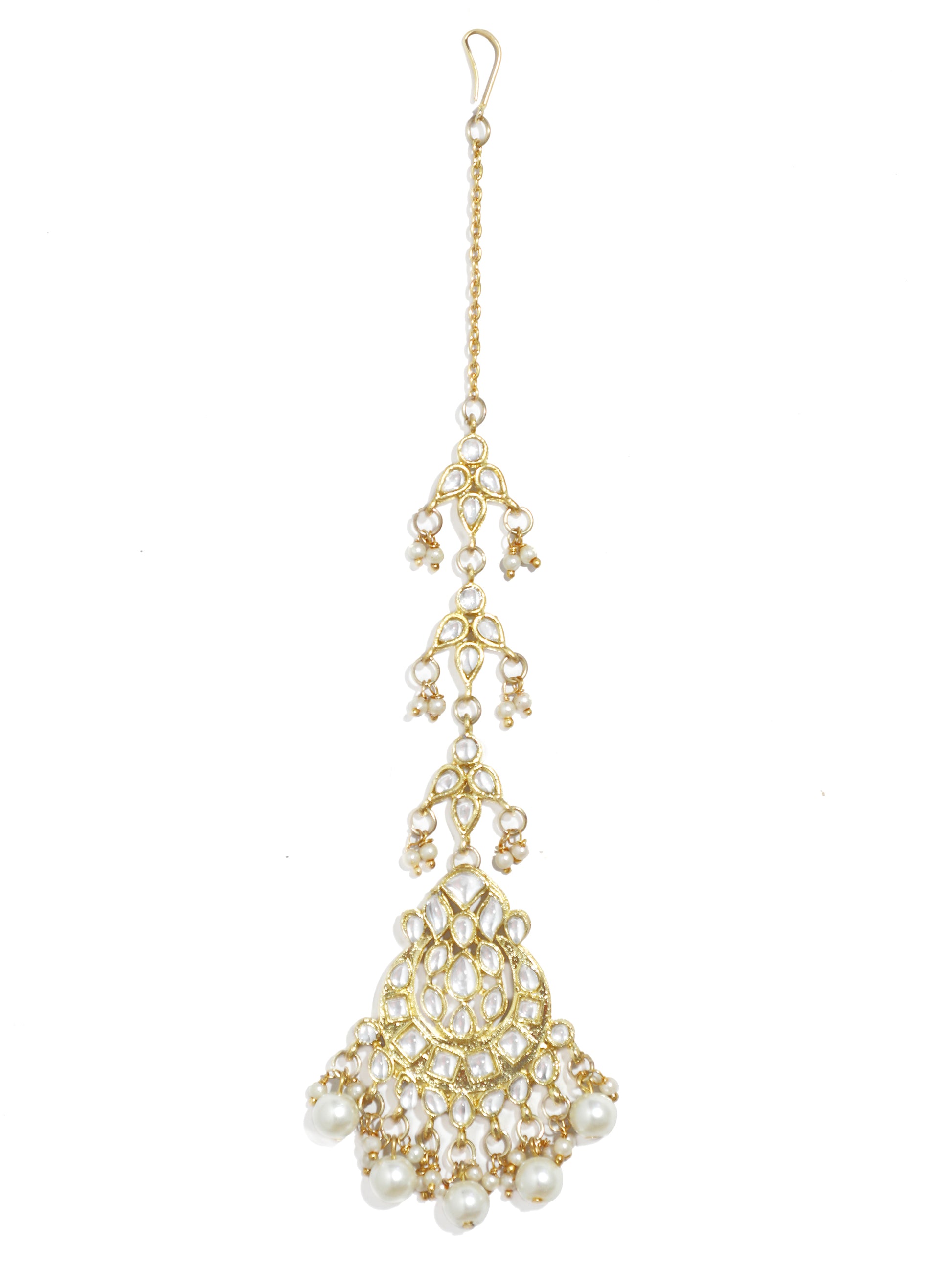 - Gold-Toned Kundan Studded Traditional Maangtikka. It's Five Layer Micro Gold Plated and Embellished with Kundan for High Durability. Intricate high polish creates glamorous reflections and adds a luxurious look. Perfect for Weddings, Festivals, Traditional Occasions. Best when paired with any Indian or Indo-Western Attire.