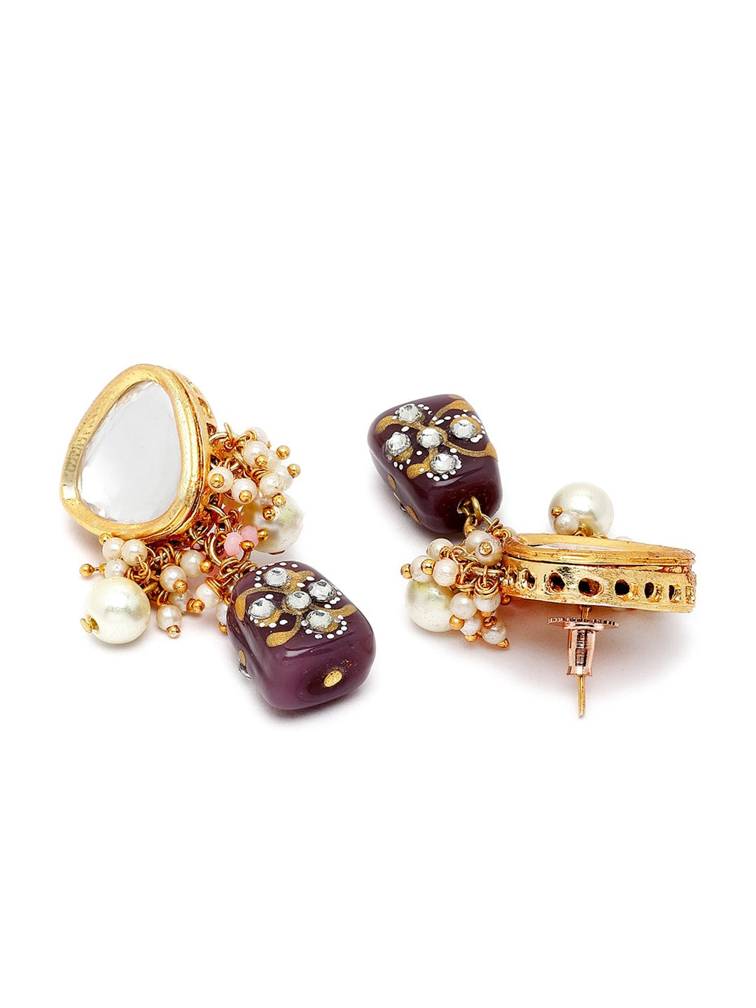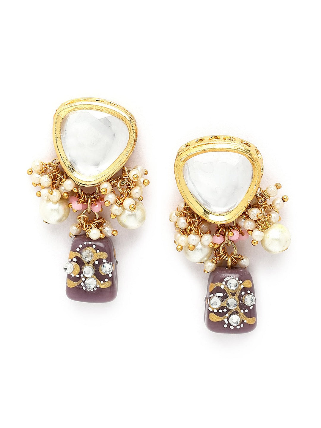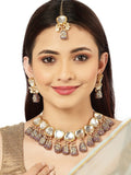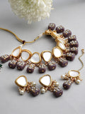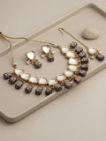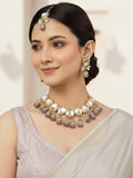 Gold-Plated White Kundan Polki Studded Beaded Jewellery Set
