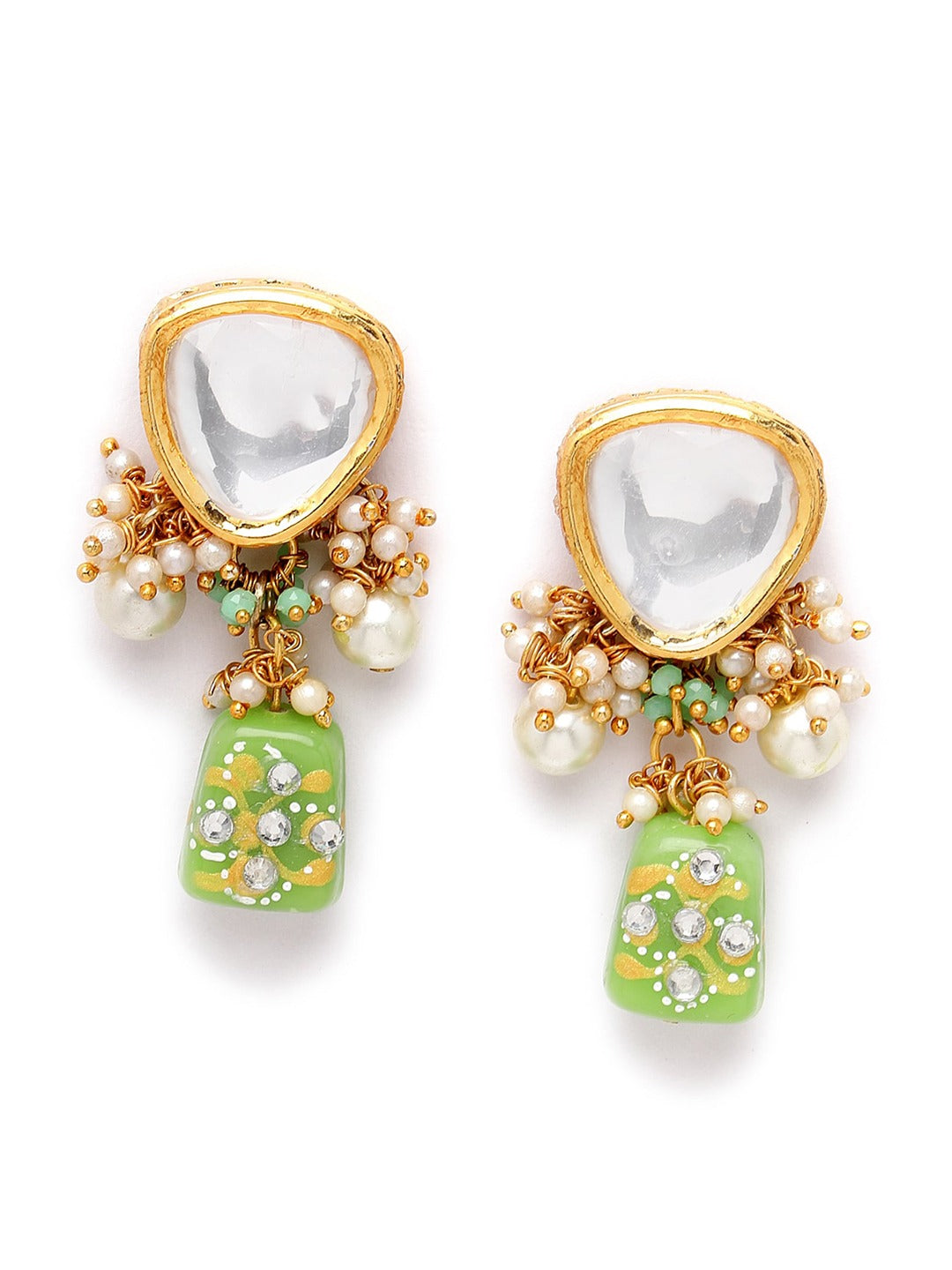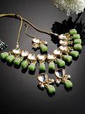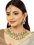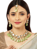 Gold-plated necklace, has white kundan-studded and green beaded detail, and secured with a drawstring closure