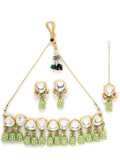 Gold-Plated White Kundan-Studded Beaded Jewellery Set