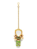 Gold-plated maang tikka, has white kundan-studded and beaded detail, and secured with a hook closure