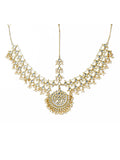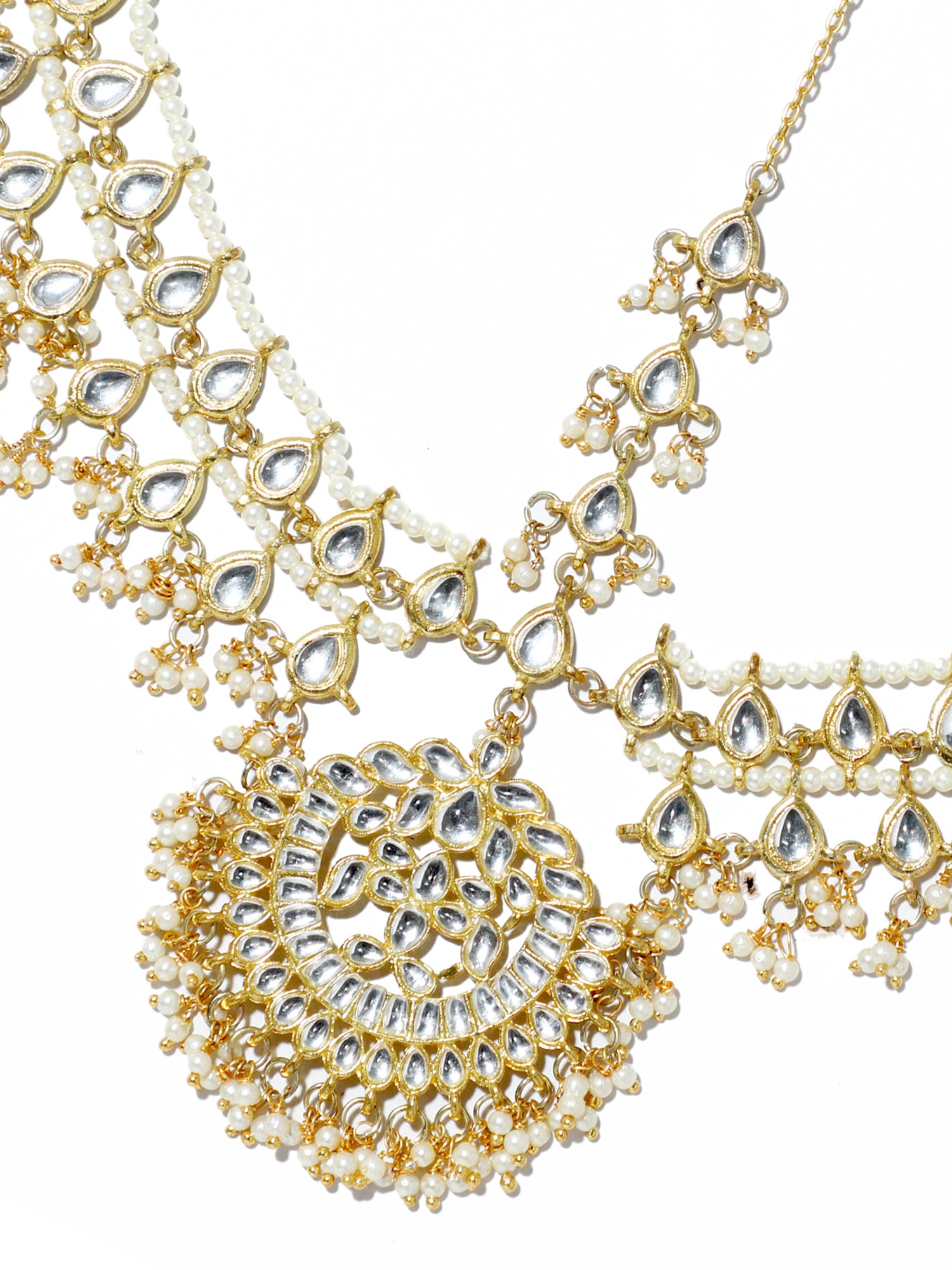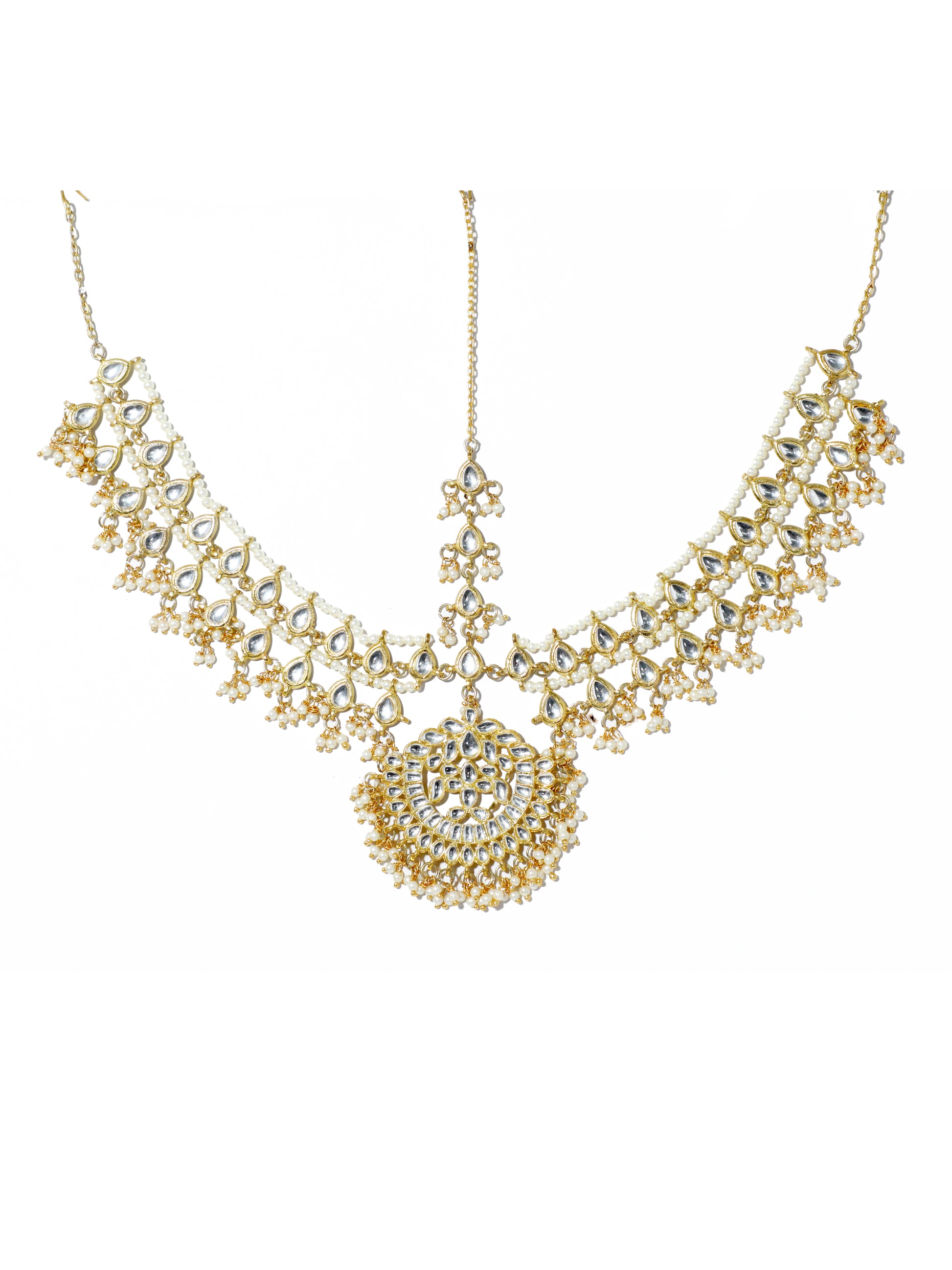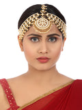 Gold-Tone Multilayered Kundan Mathapatti with Pearl Beads