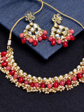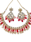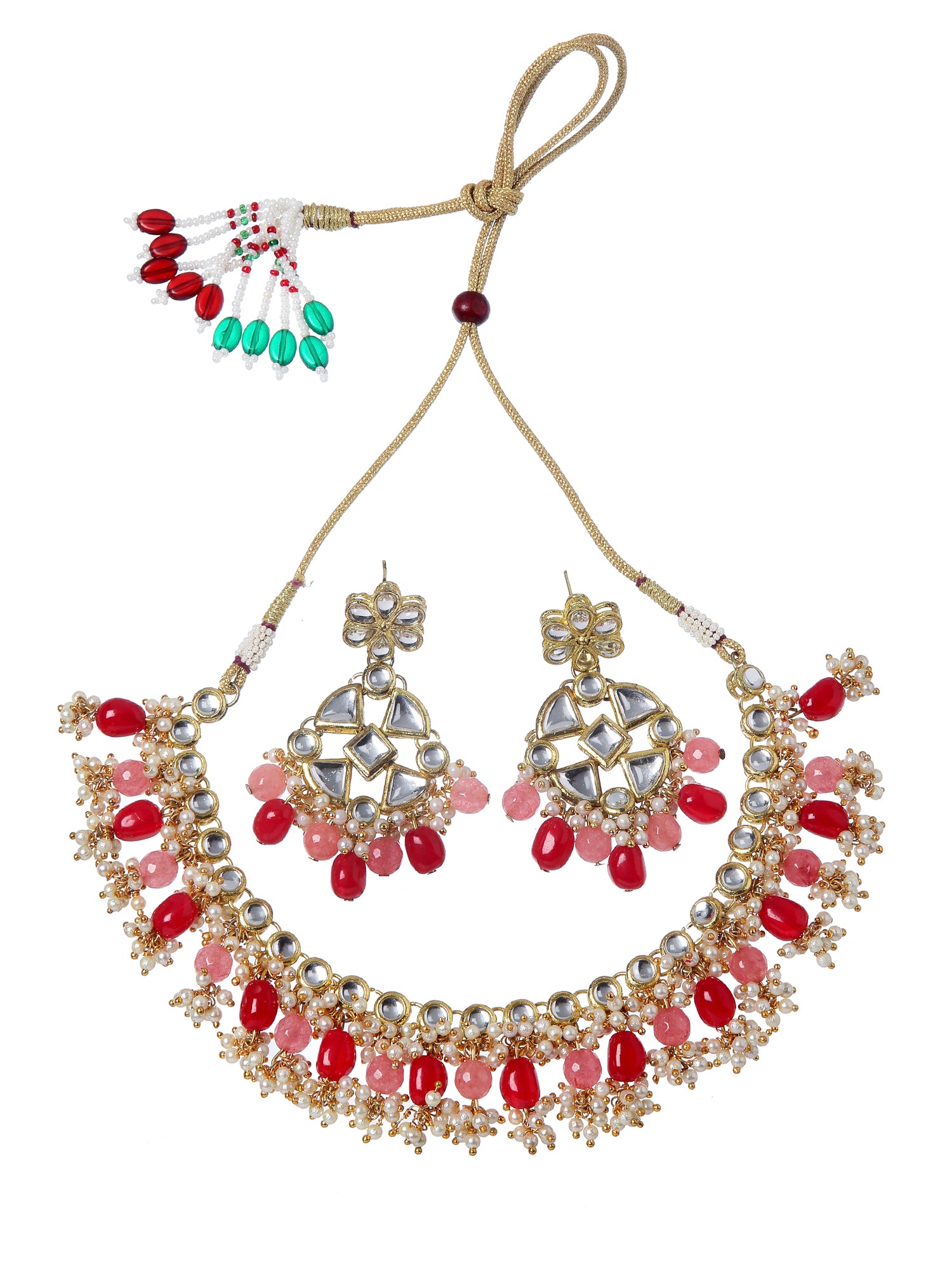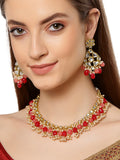 Traditional Gold Plated Kundan & Red Tumble Stone Studded Necklace Set