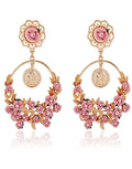 Pink Flower Shape Resin Fancy Party Wear Dangle Chandbali Earrings