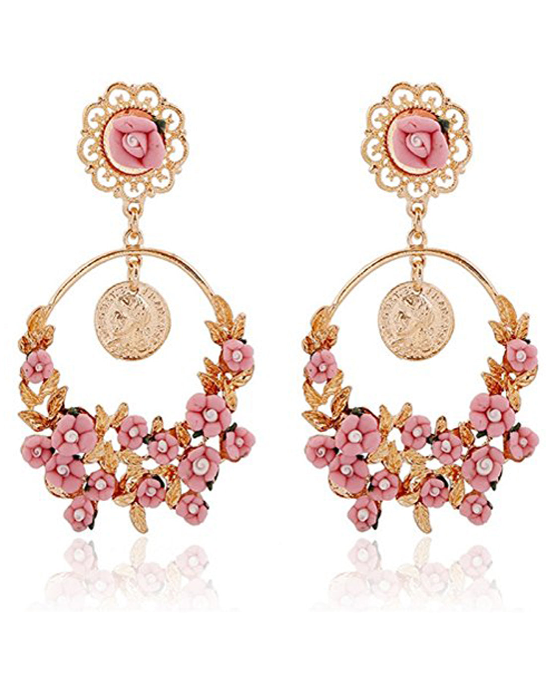 - GoldPlated Pink Flower Shape Resin Fancy Party Wear Dangle Earrings For Women