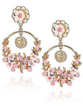 GoldPlated White and Pink Flower Shape Resin Fancy Party Wear Earrings