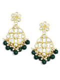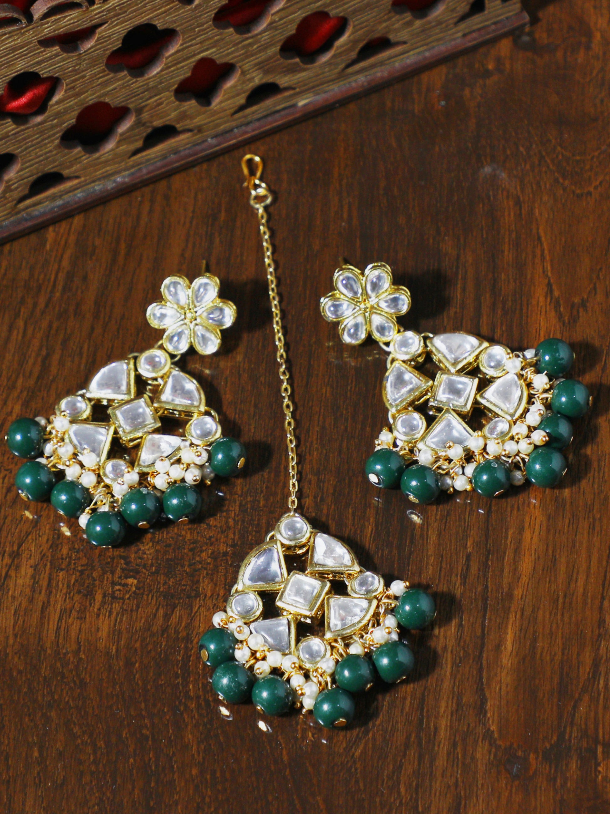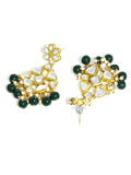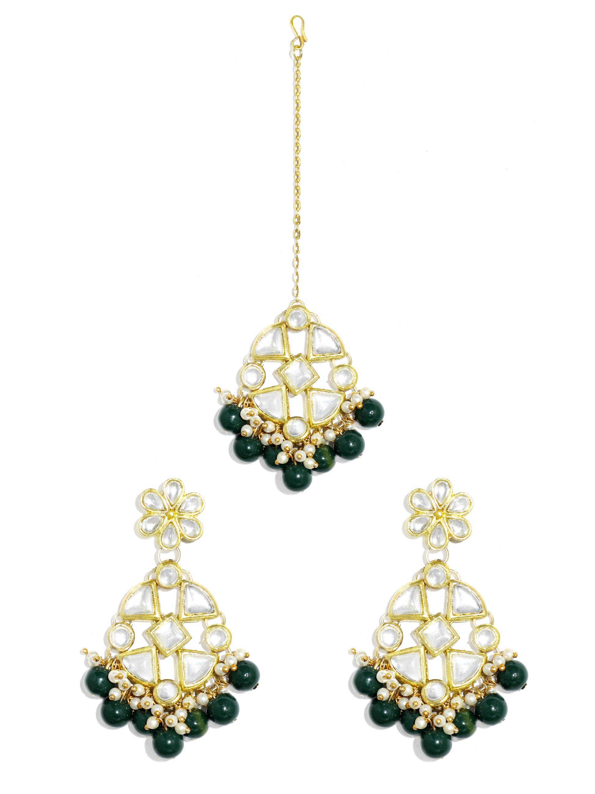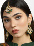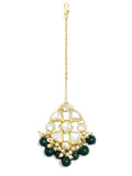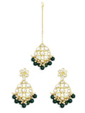 Green Beads Kundan Dangler Earrings with Maangtikka