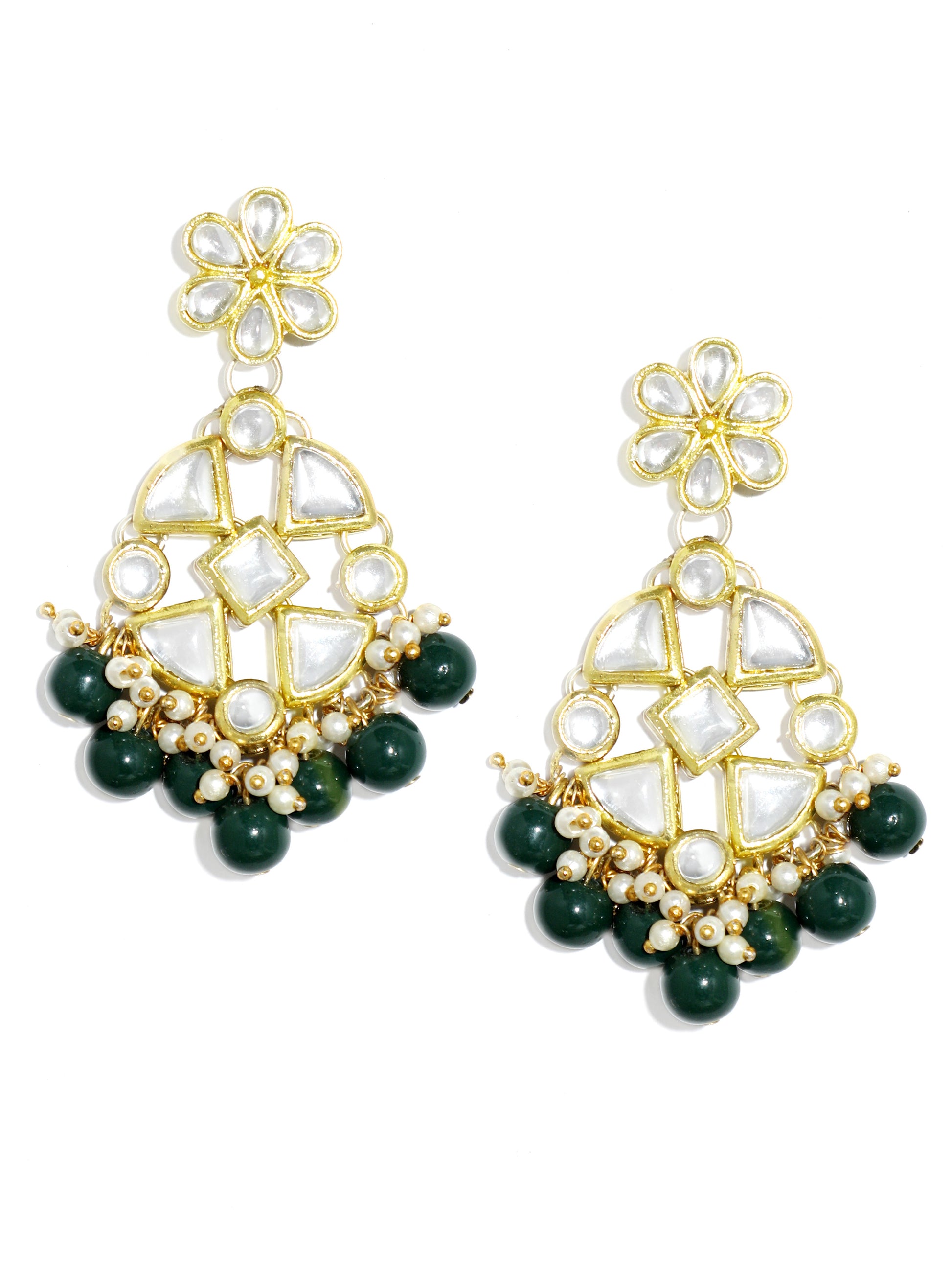 - Gold Plated Green Beads Kundan Dangler Earrings with Maangtikka for Women. It's Five Layer Micro Gold Plated and Embellished with Kundan for High Durability. Intricate high polish creates glamorous reflections and adds a luxurious look. Perfect for Weddings, Festivals, Traditional Occasions. Best when paired with any Indian outfit.