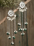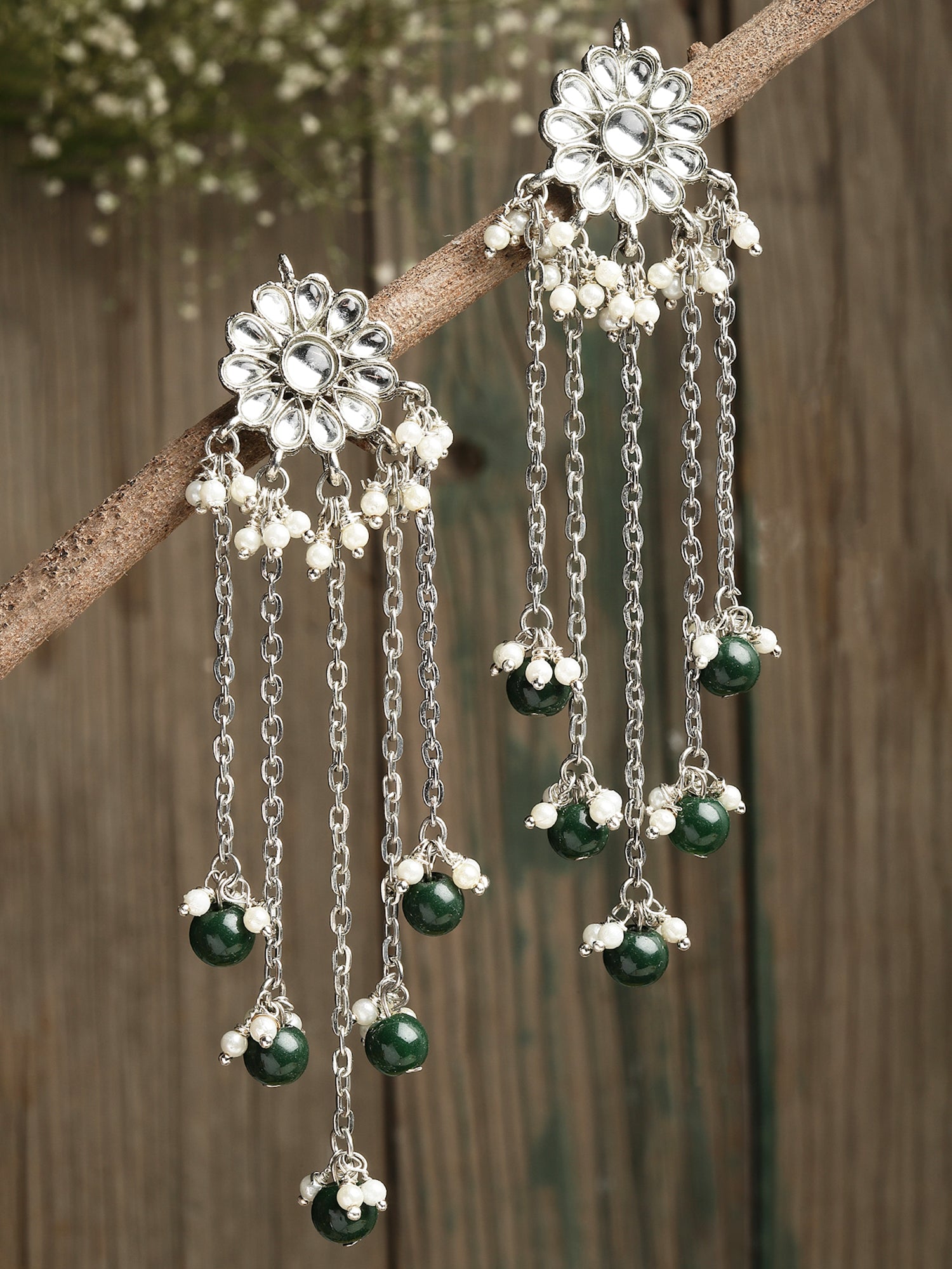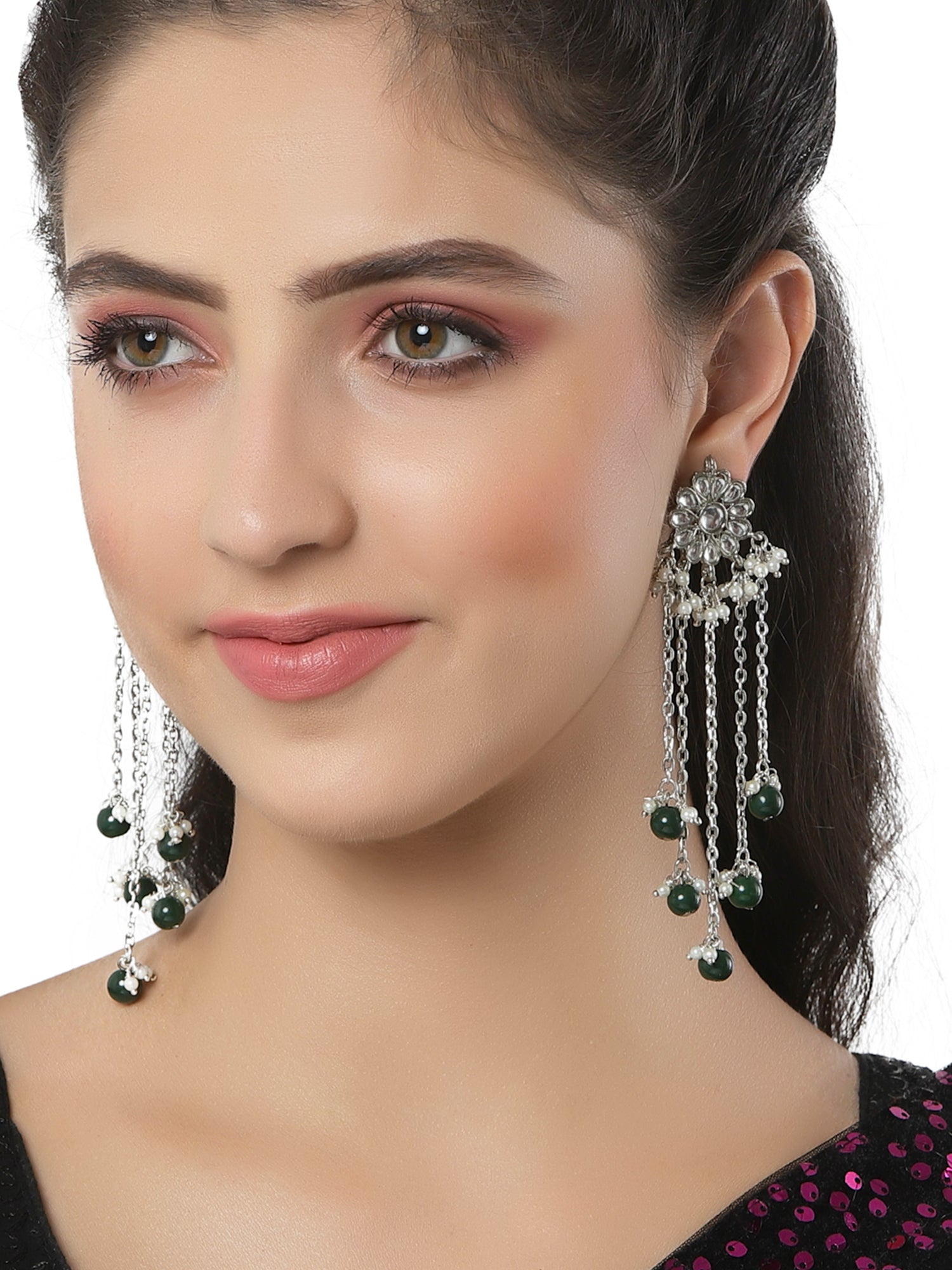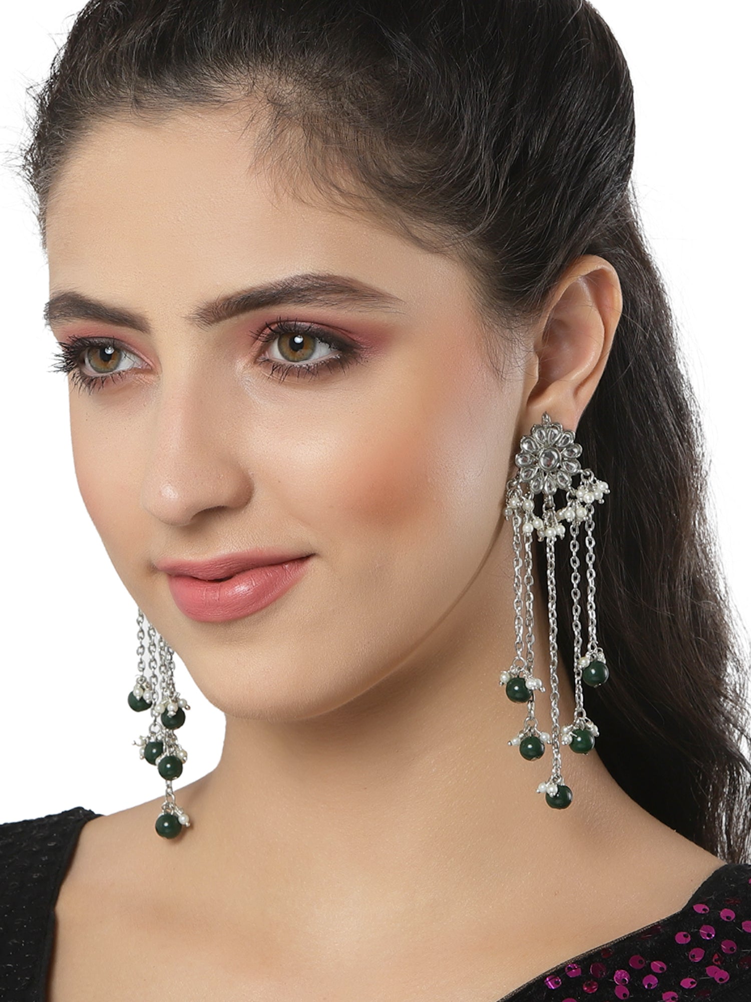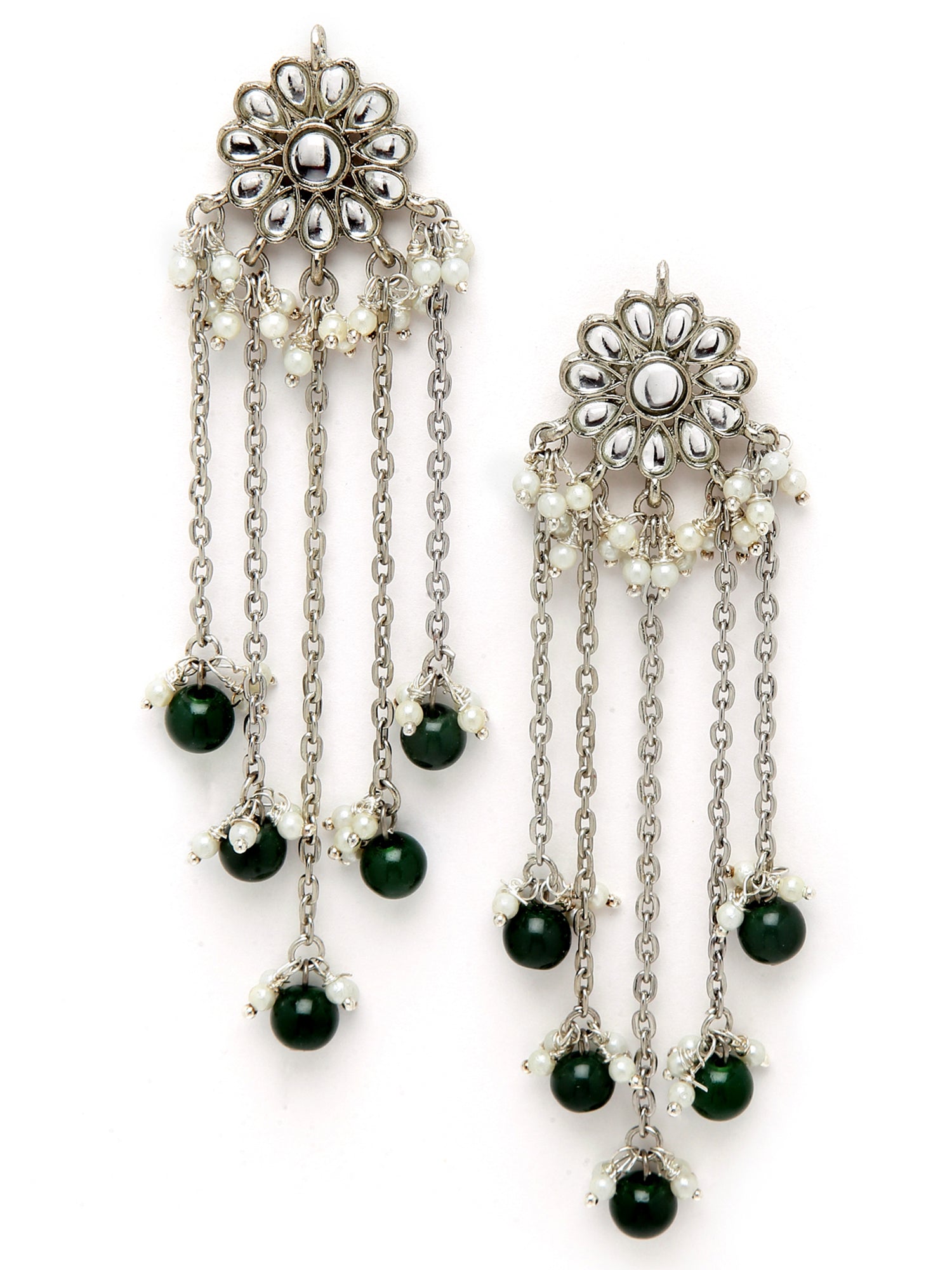 - Green Beads Oxidised Silver Kundan Tessel Earrings for Women. It is a High-Quality Oxidised Silver Jewellery Embellished with Kundan. Perfect for Weddings, Party, Festivals, Traditional Occasions.