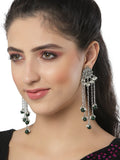 Green Beads Oxidised Silver Kundan Tessel Earrings for Women