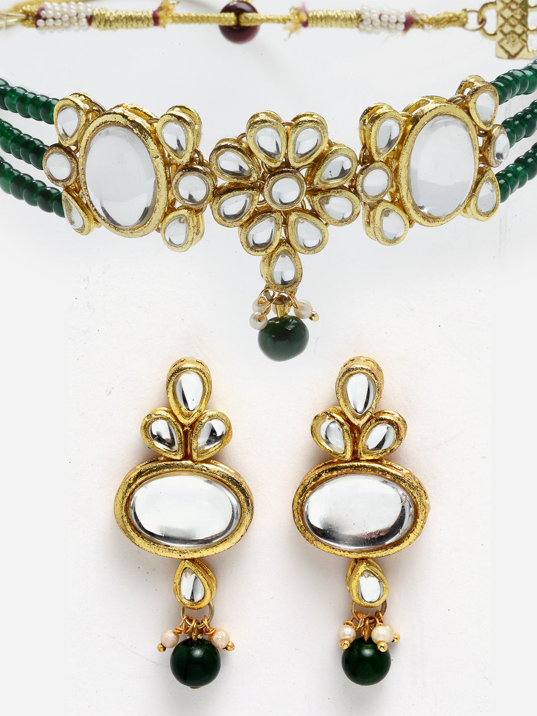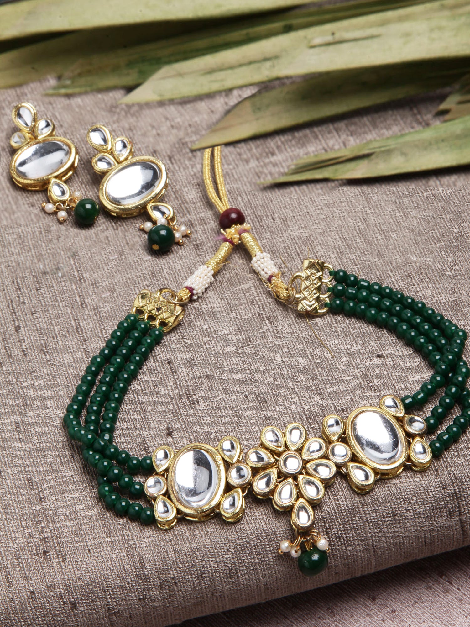 Green Multistrand Embellished Kundan Choker Necklace Set