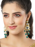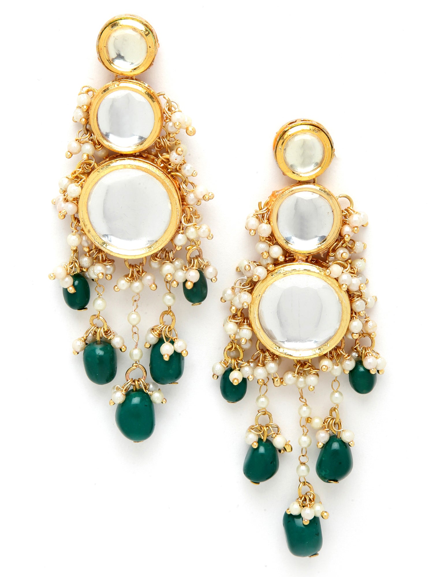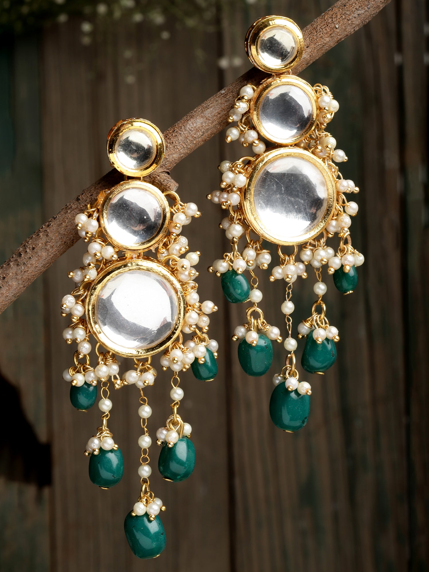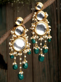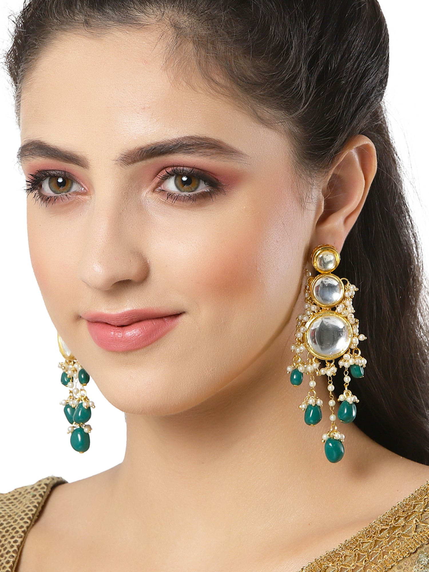 Green Tumble Polki Kundan Dangler Earrings for Women