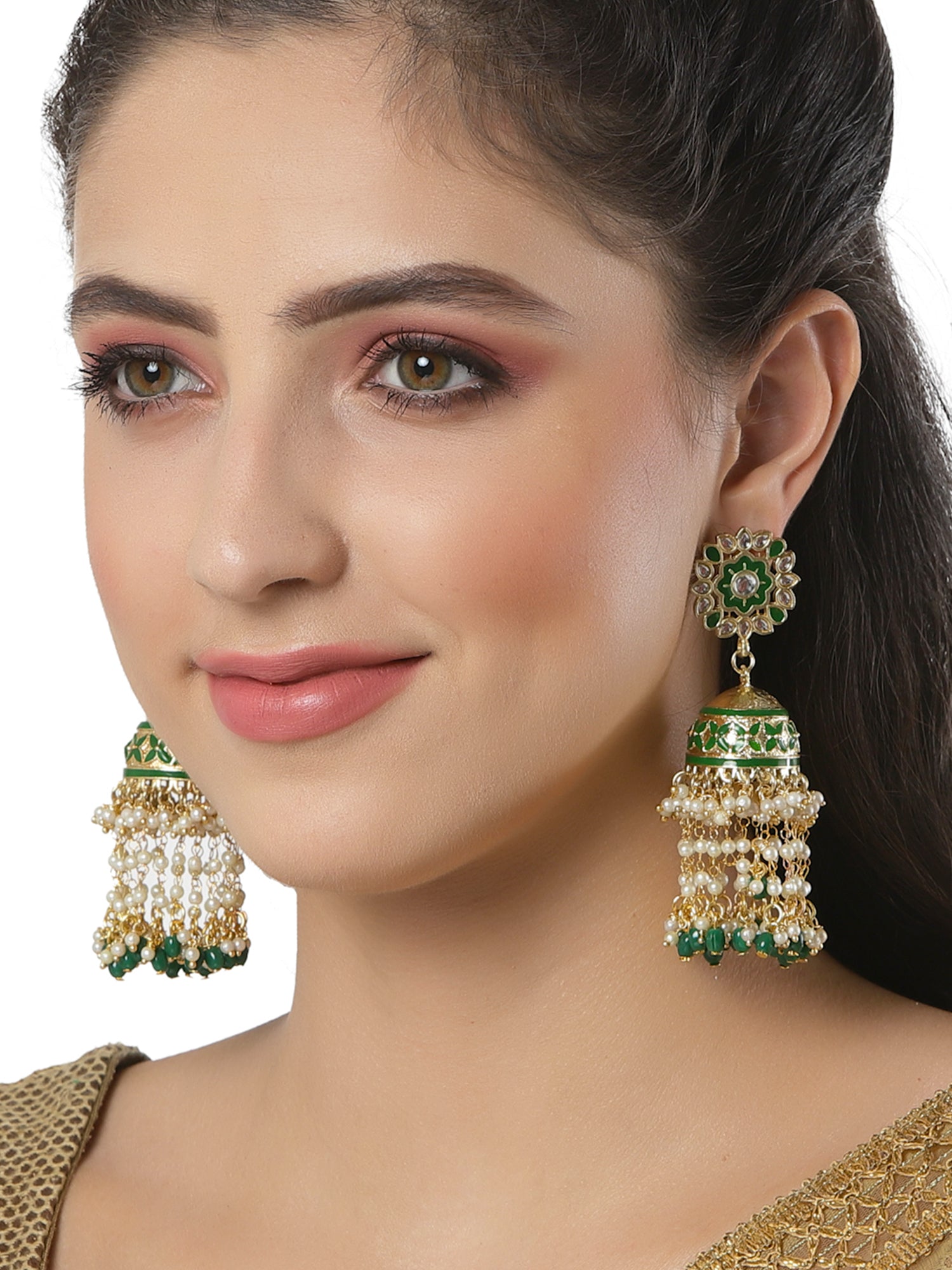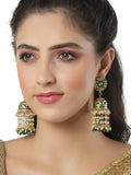 Green Tumble Stone and Pearl Jhumki Earrings for Women