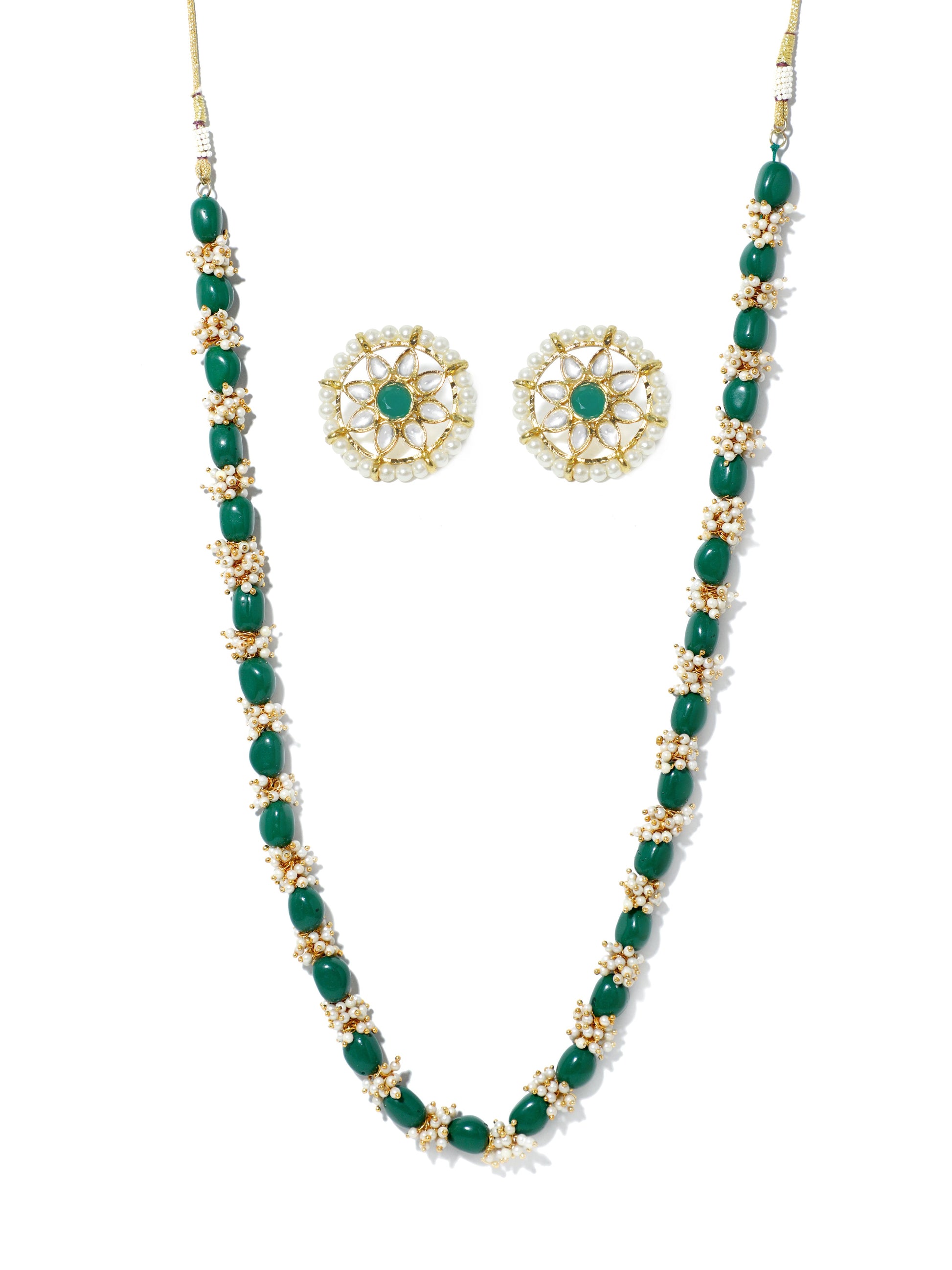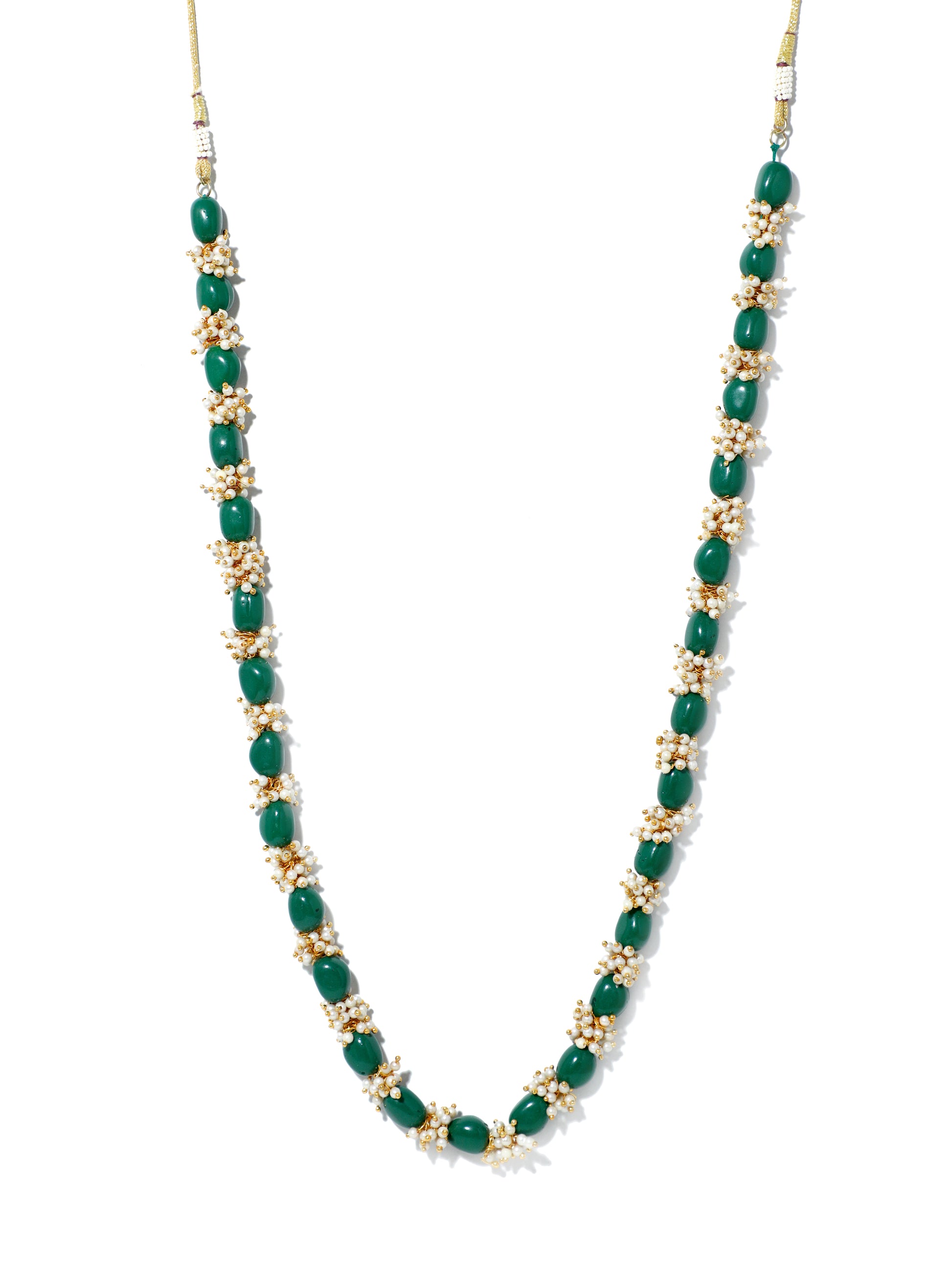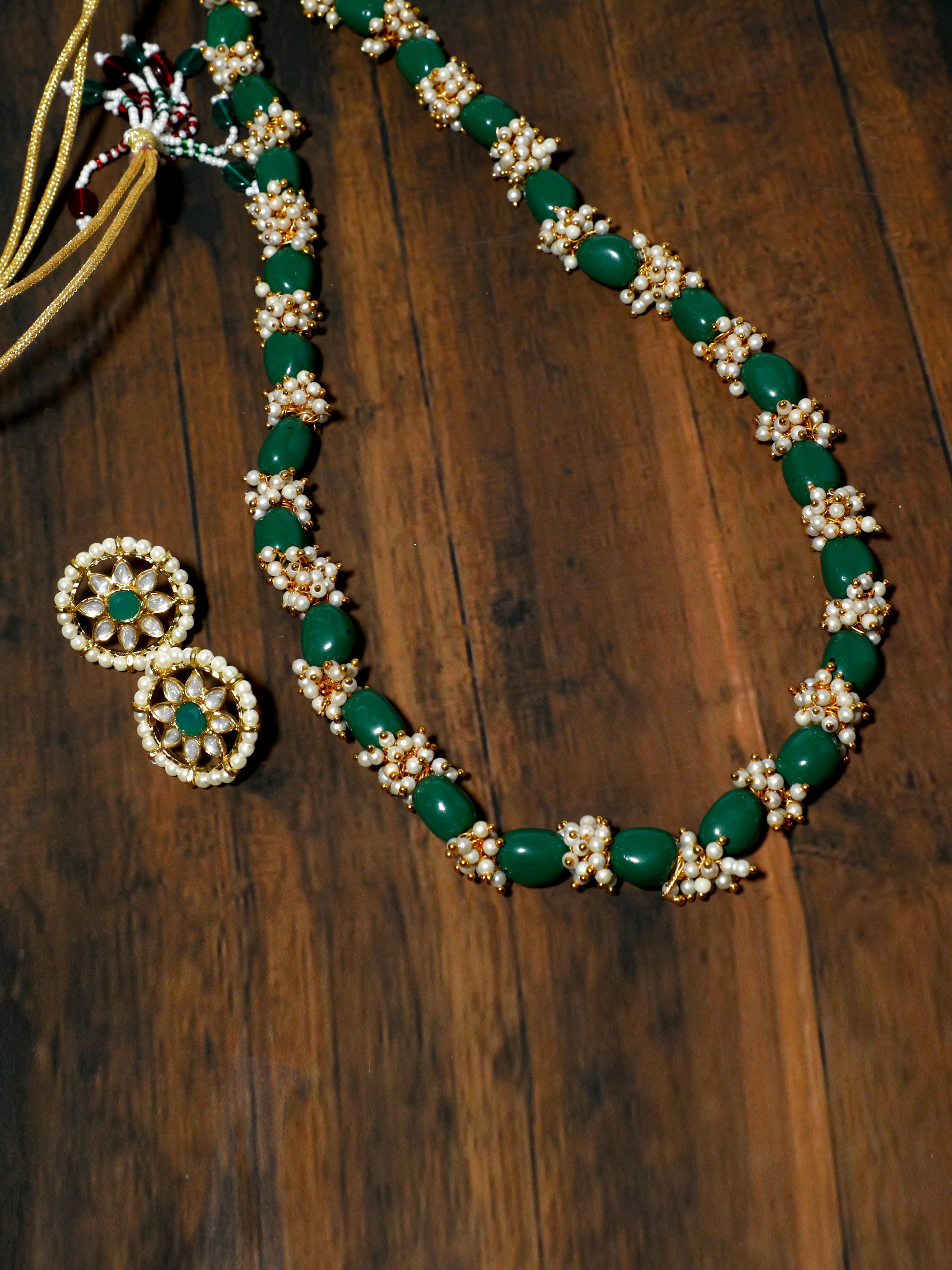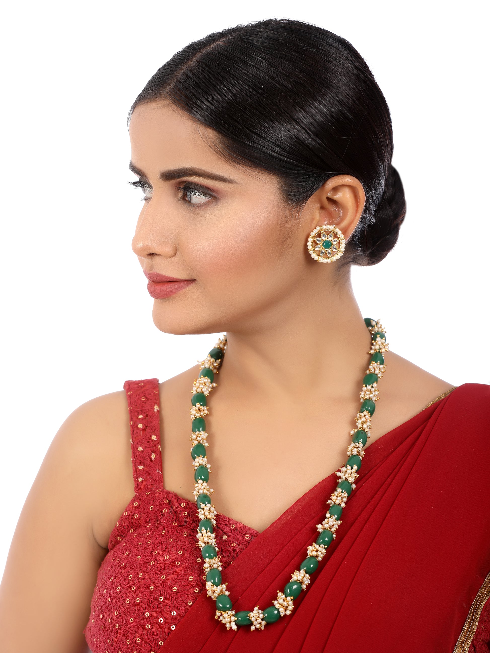 - Look Stylish and Trendy with these Green Beads with Tassels Rani Haar with Stud Earrings. Best when paired with Indian or Indo Western Attire. Made with Internationally approved skin-friendly material
