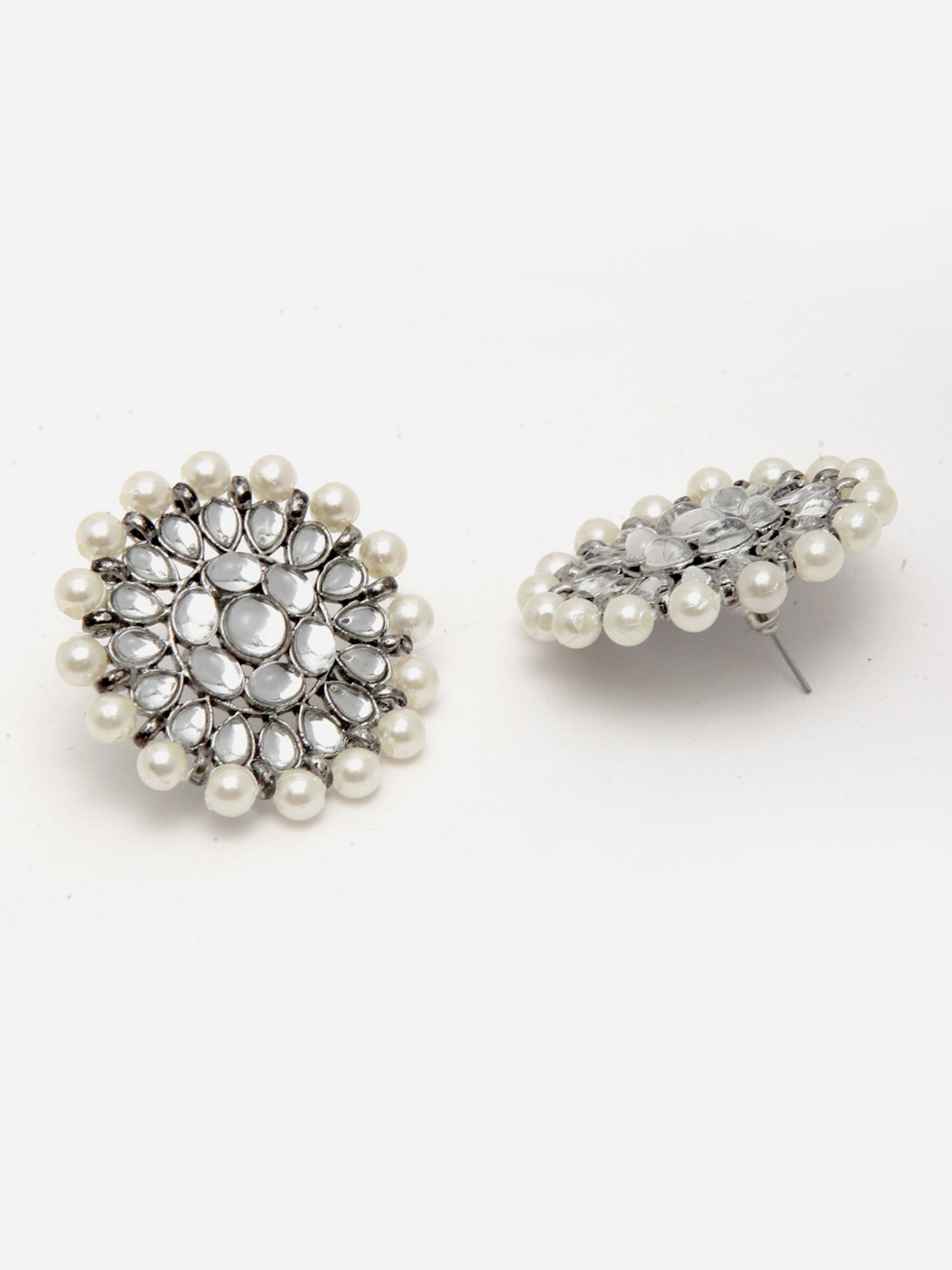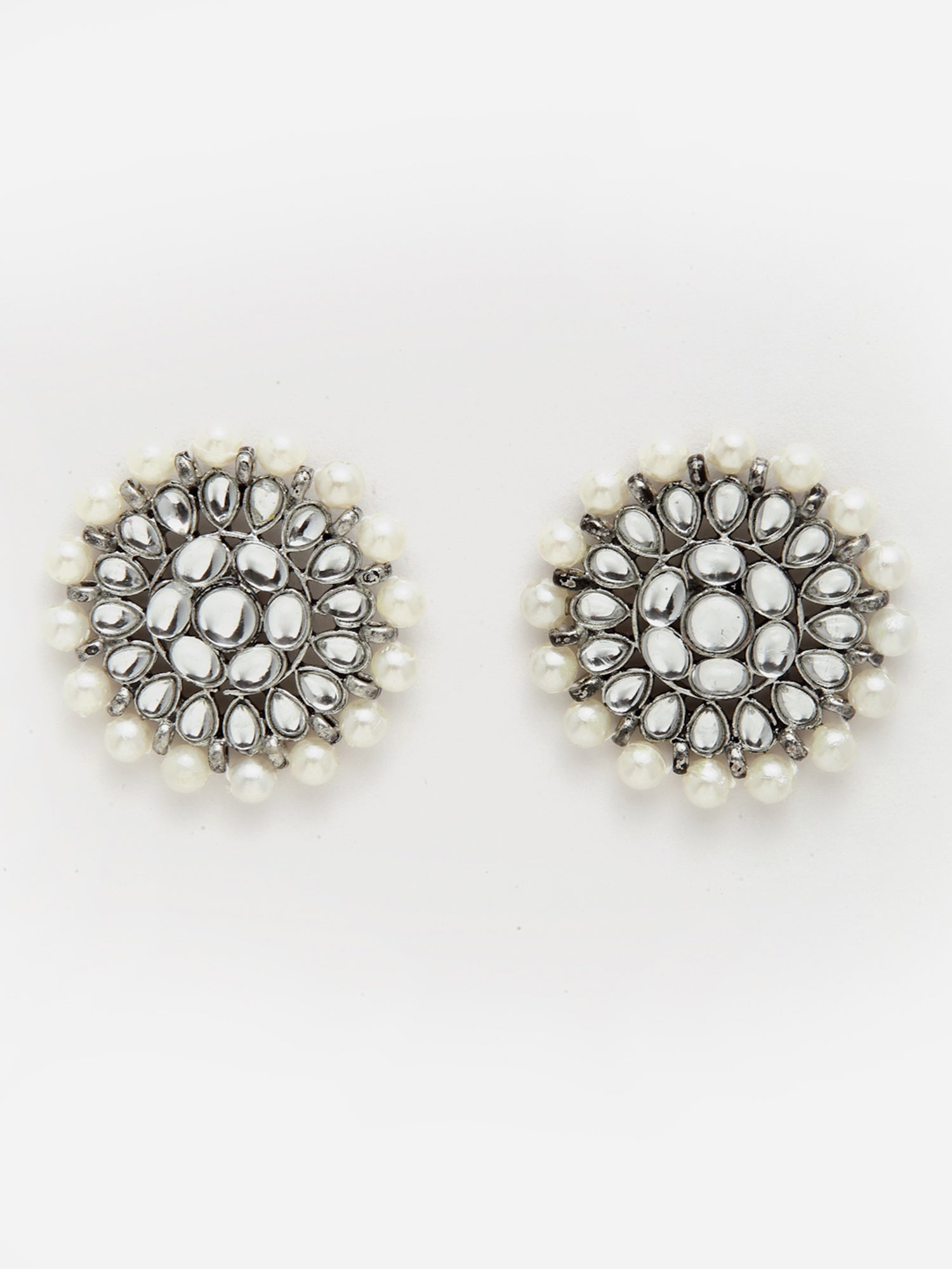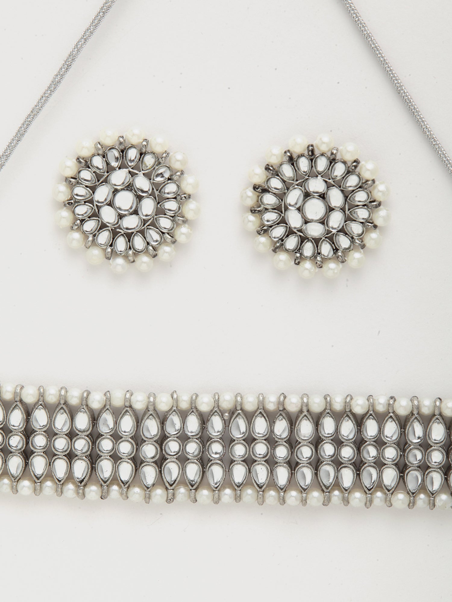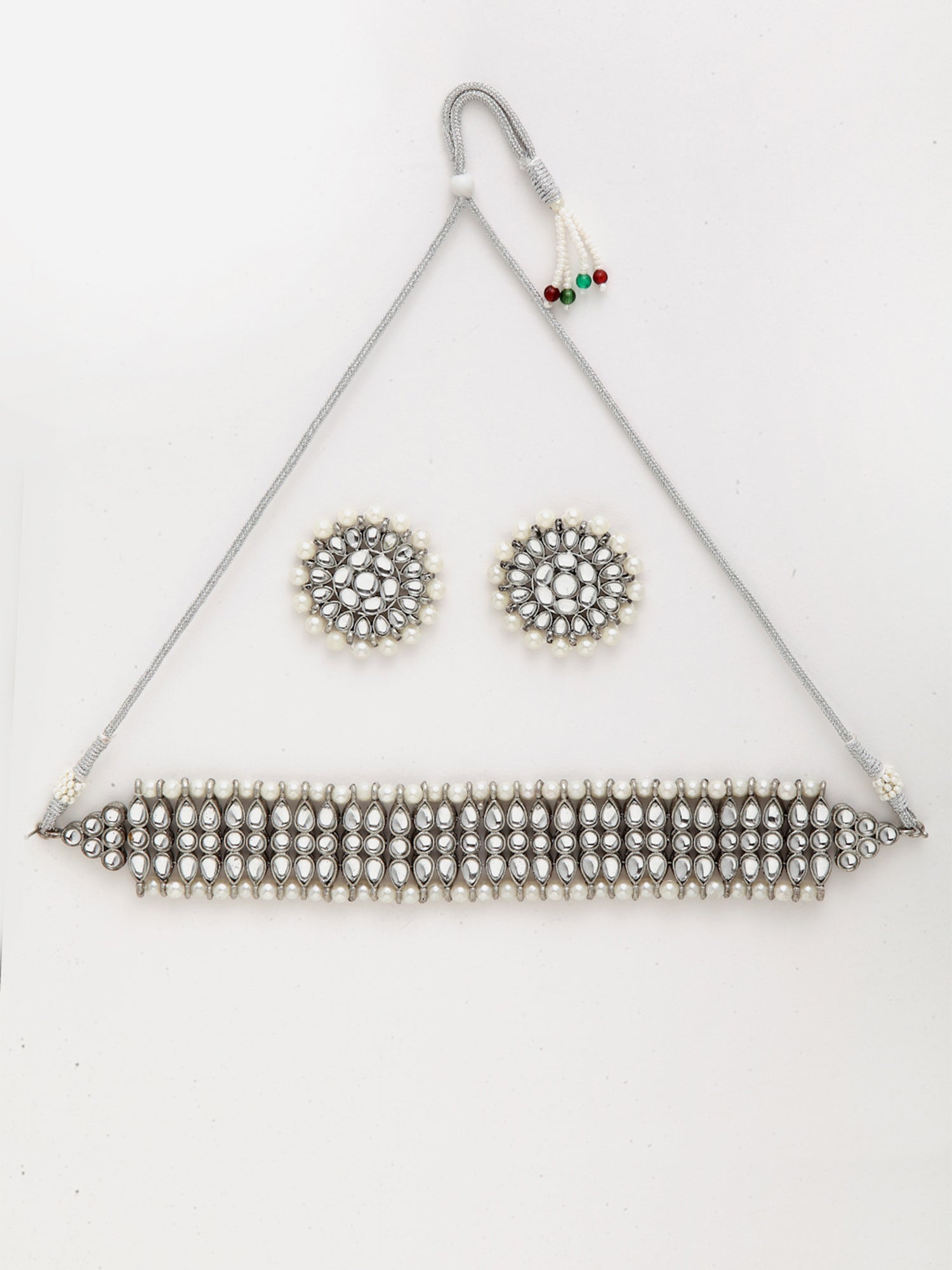 - Handcrafted Oxidised Silver Pearl and Kundan Studded Choker Necklace Set. It is a High-Quality Oxidised Silver Jewellery Embellished with Kundan. Perfect for Weddings, Party, Festivals, Traditional Occasions.