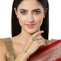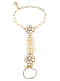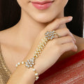 KARATCART Gold Plated Pearl and Floral Kundan Hathphool for Women
