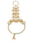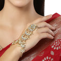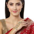 KARATCART Gold Plated Pearl and Moon Shape Kundan Hathphool for Women