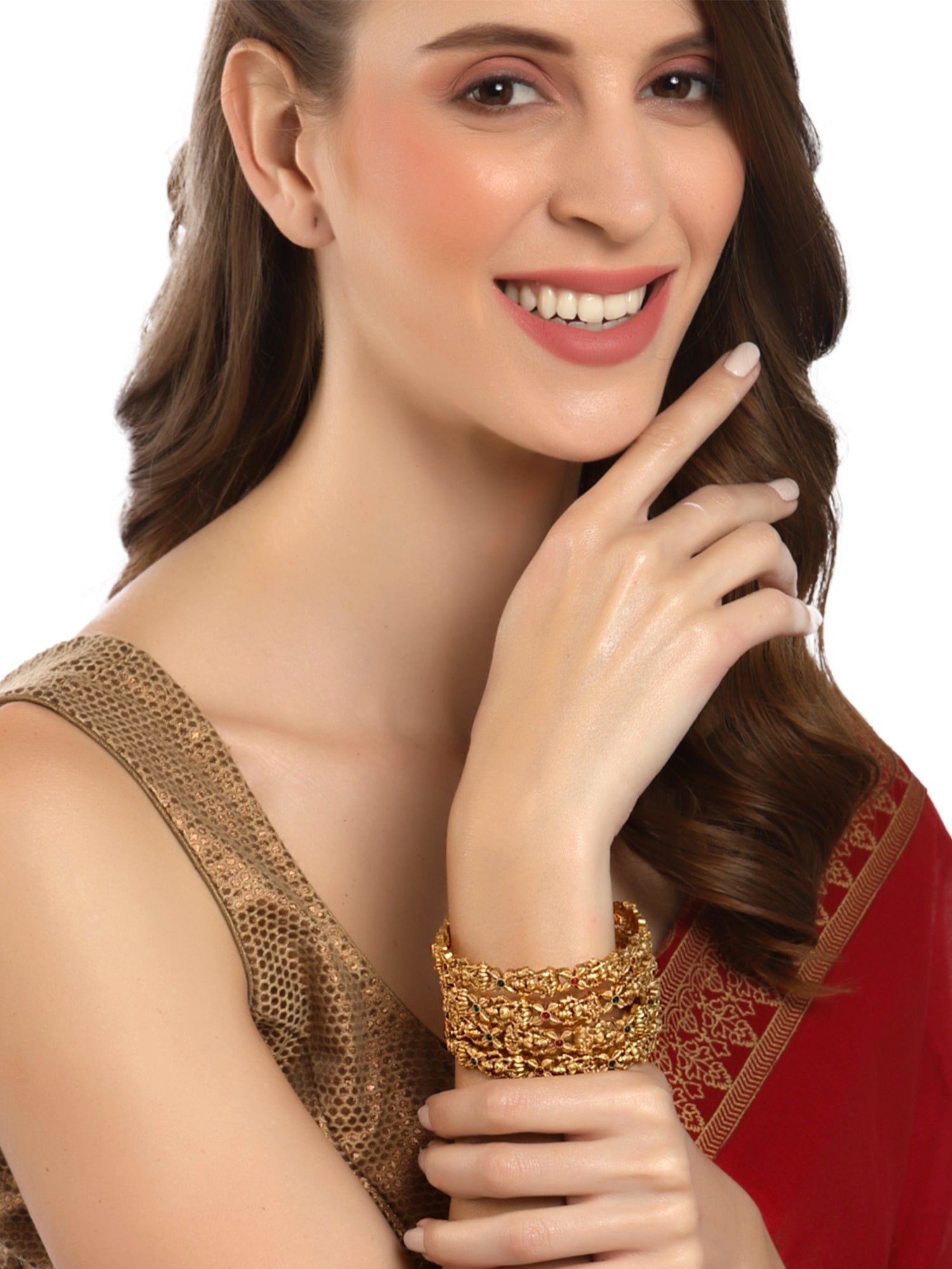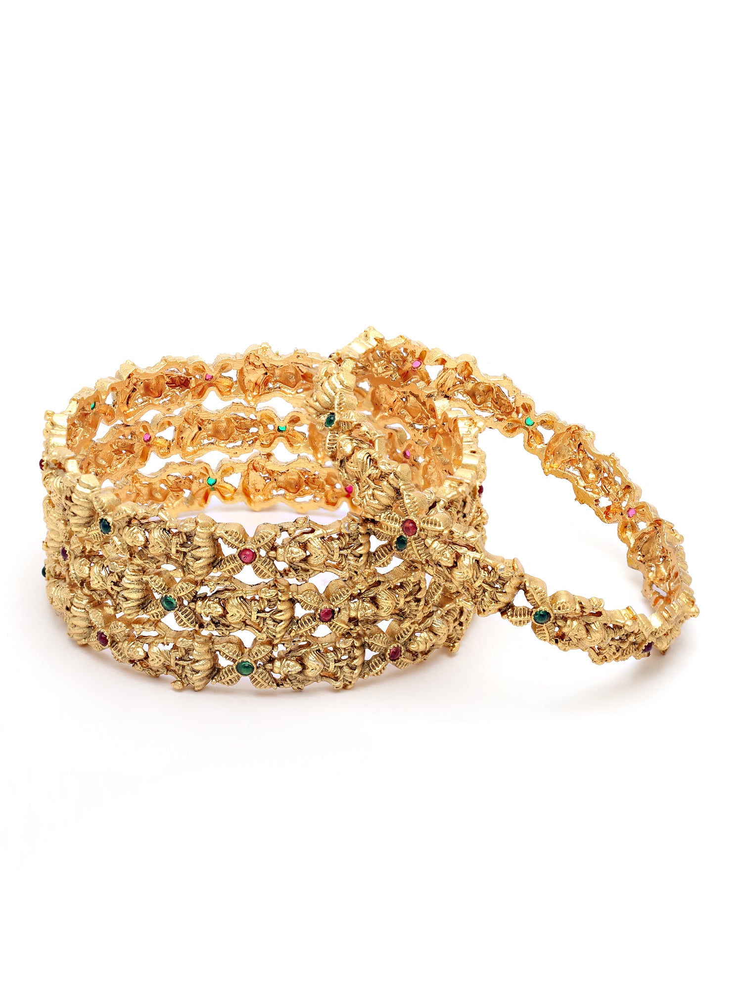 - Antique Gold Plated Mata Laxmi Rajwadi Temple Bangle Set for Women. The bangle has intricate cutwork & floral work. This authentic Indian design symbolizes the ancient jewelry-making art of India. These are a perfect bangle set for occasion and casual wear.