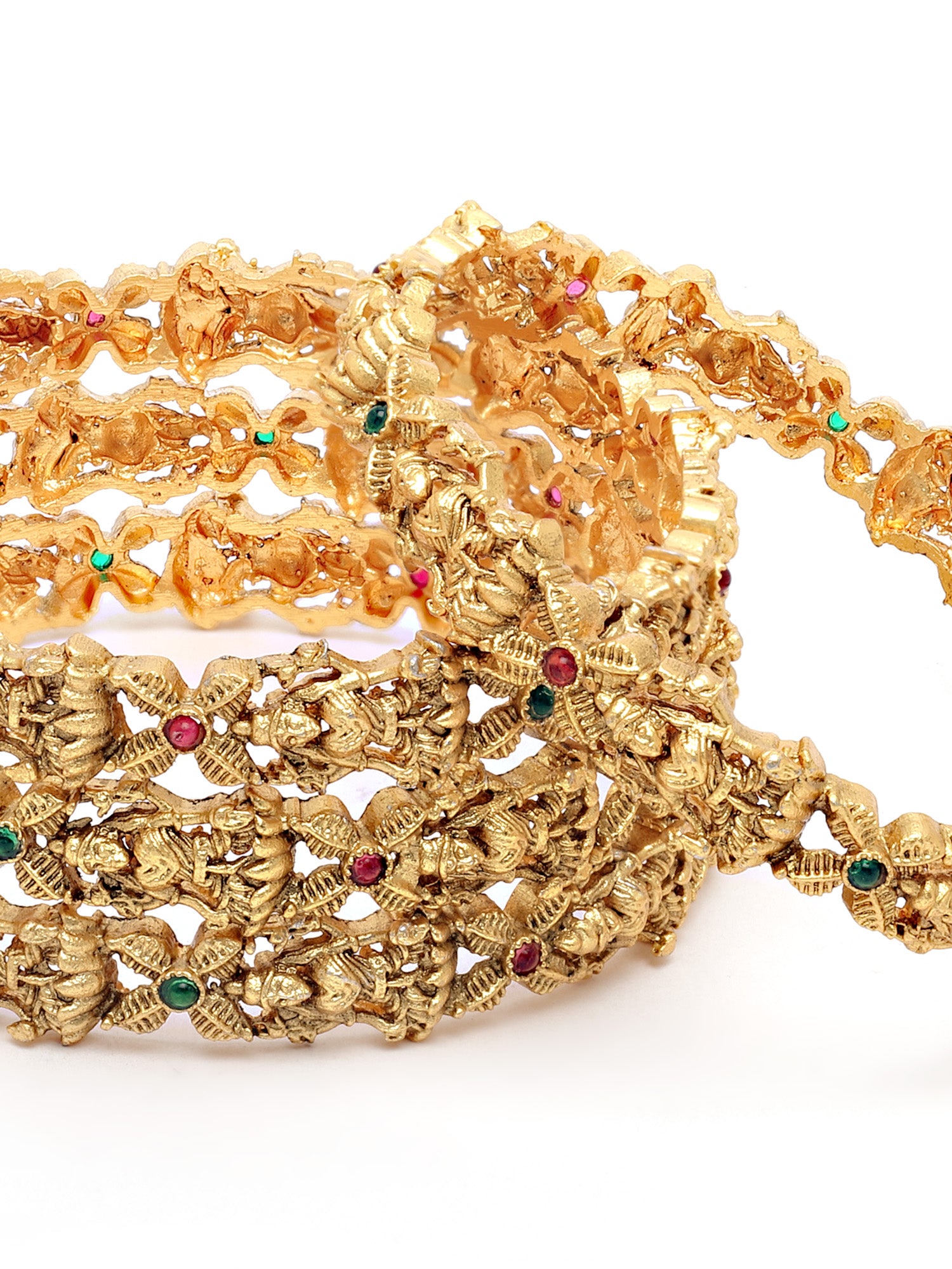 Karatcart Antique Gold Plated Mata Laxmi Rajwadi Temple Bangle Set for Women