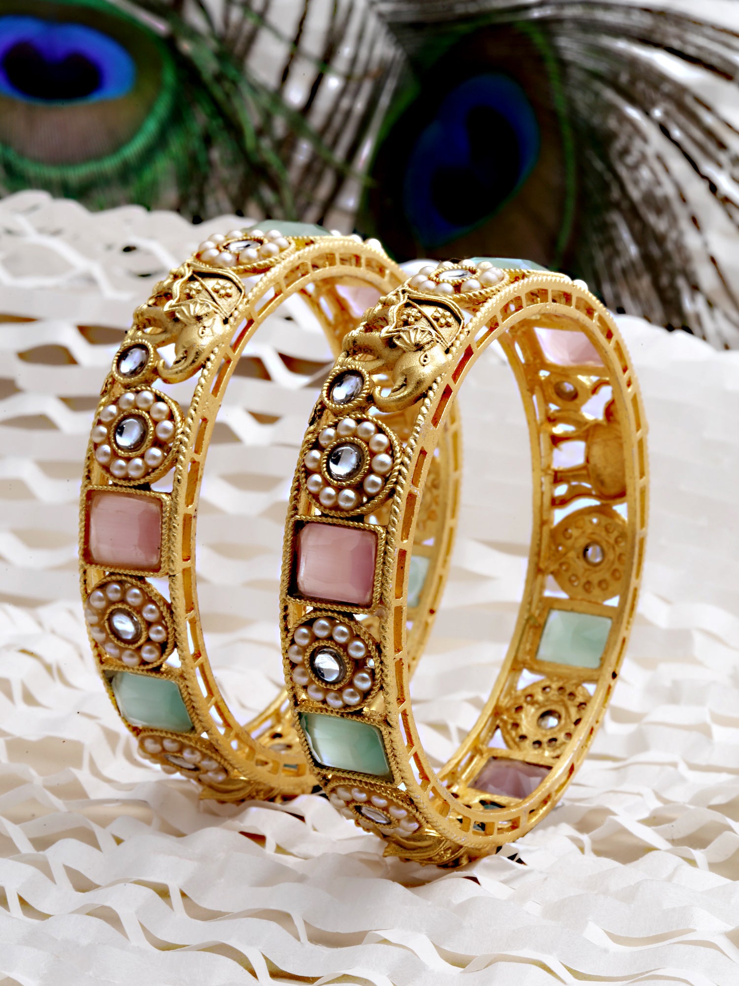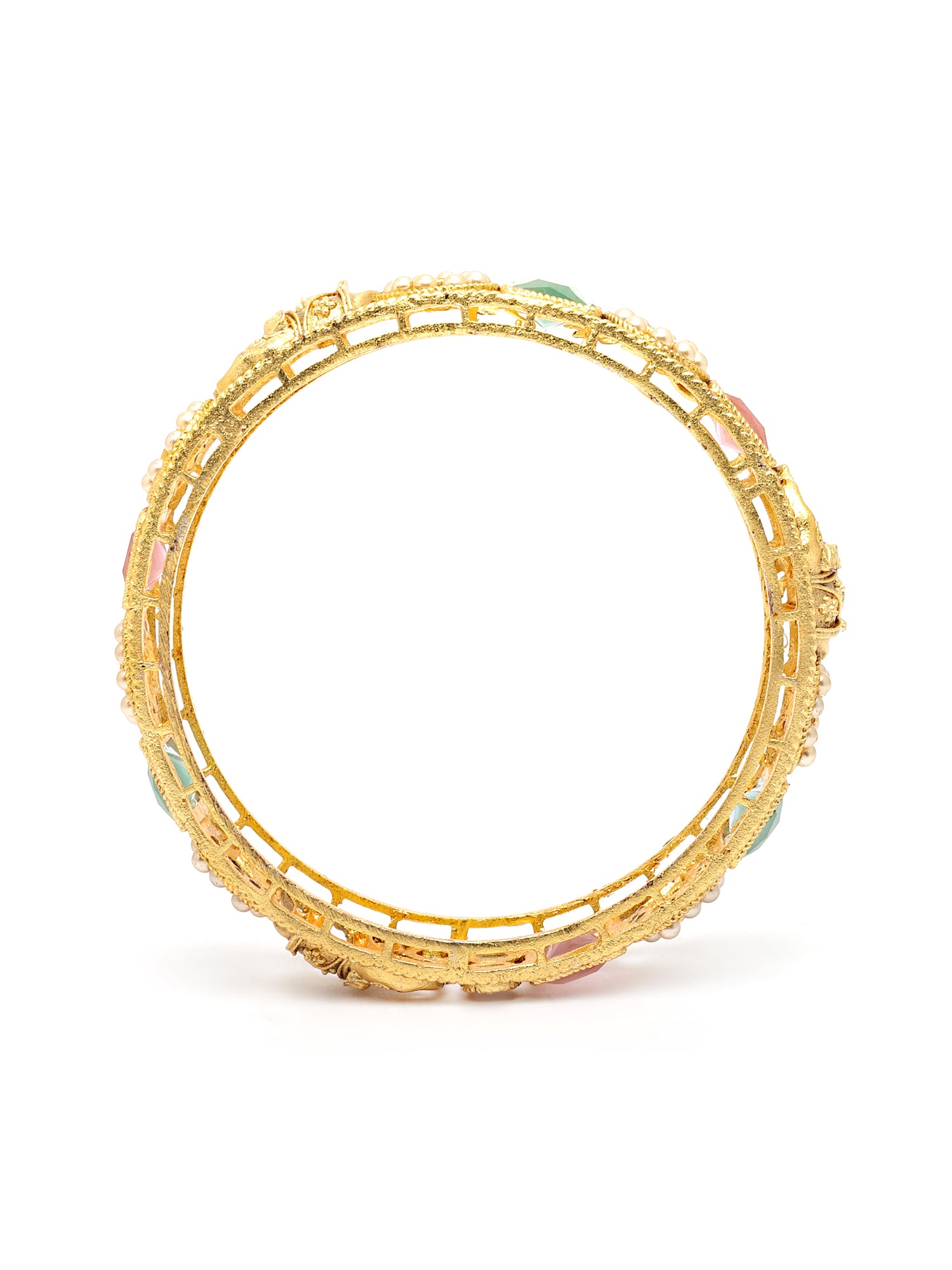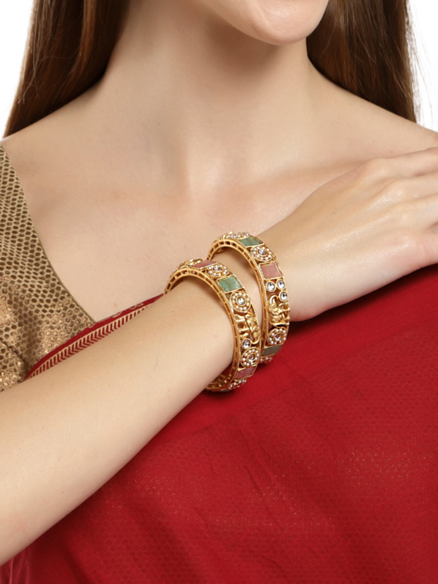 - Antique Gold Plated Rajwadi Temple Bangle Set for Women. The bangle has intricate cutwork & floral work. This authentic Indian design symbolizes the ancient jewelry-making art of India. These are a perfect bangle set for occasion and casual wear.