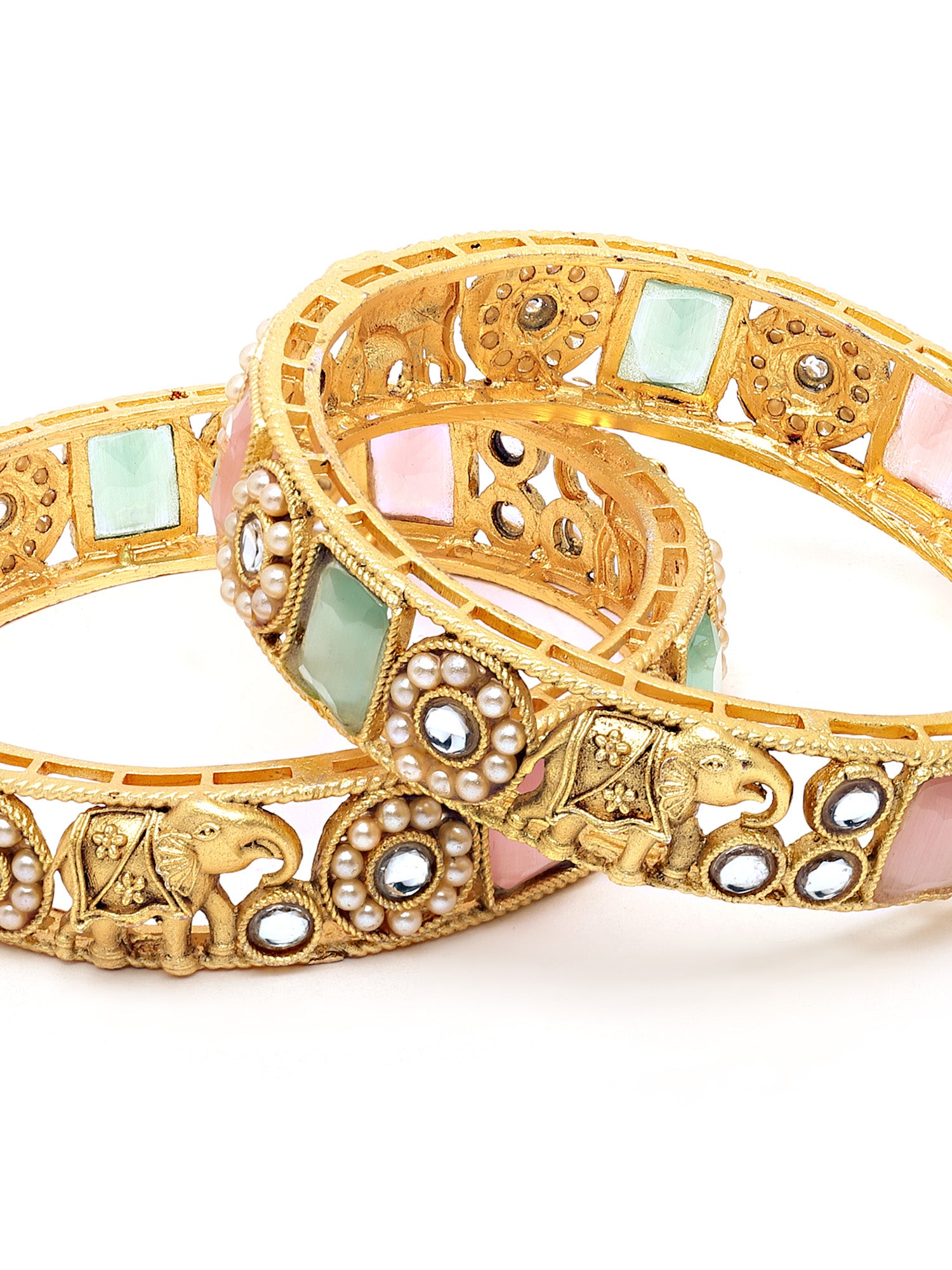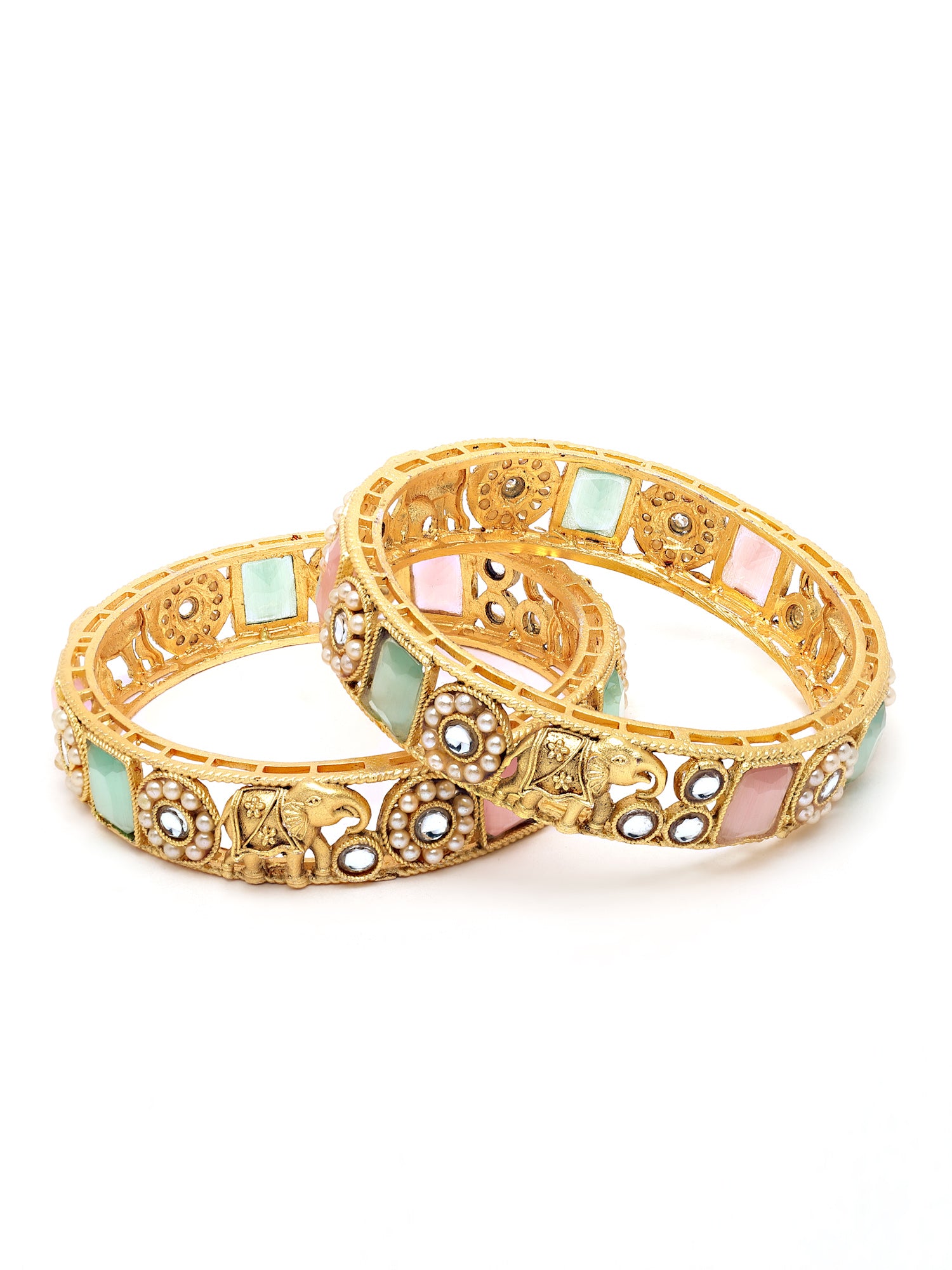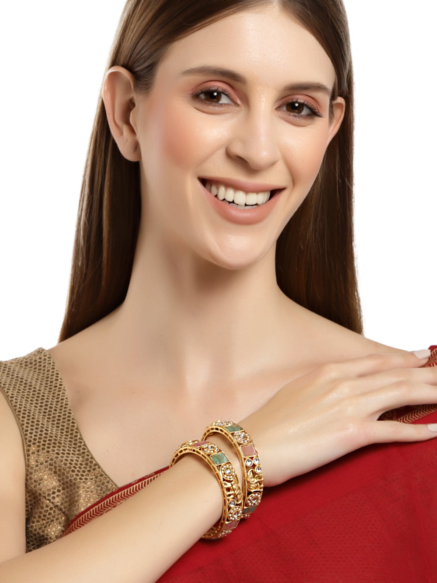 - Antique Gold Plated Rajwadi Temple Bangle Set for Women. The bangle has intricate cutwork & floral work. This authentic Indian design symbolizes the ancient jewelry-making art of India. These are a perfect bangle set for occasion and casual wear.