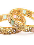 Karatcart Antique Gold Plated Rajwadi Temple Bangle Set for Women