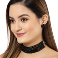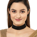 Karatcart Black Crystal Beaded Choker Necklace Setfor Women