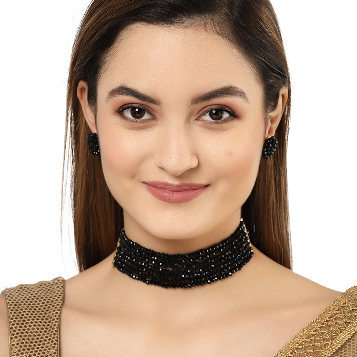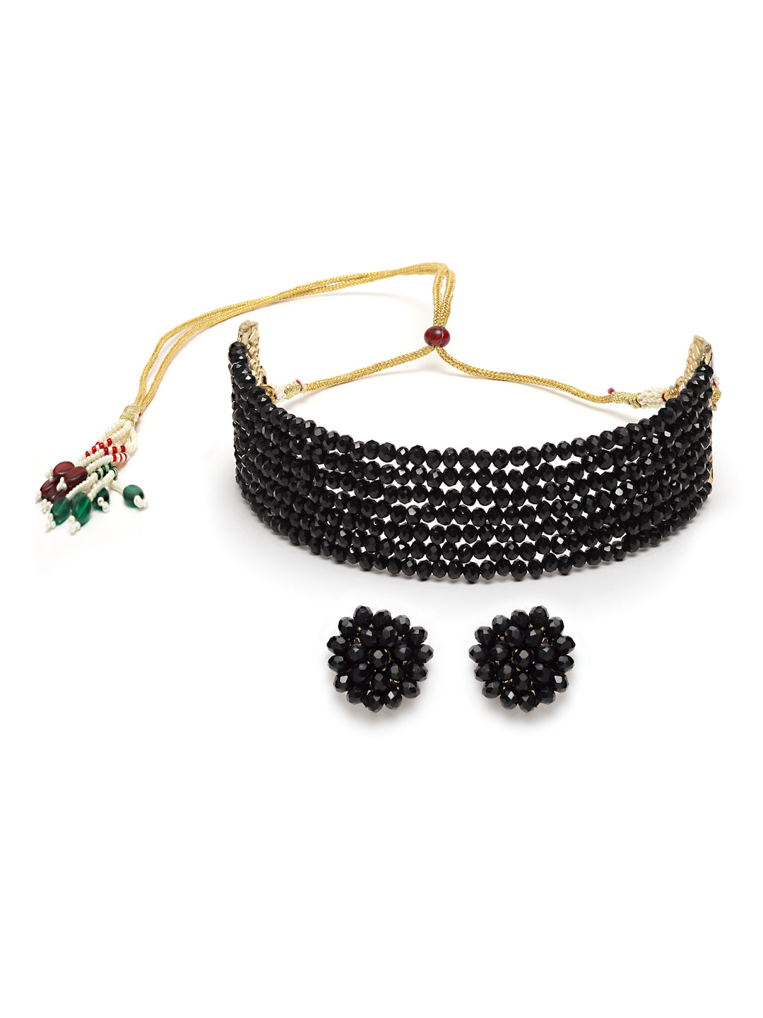 - Karatcart Black Crystal Beaded Choker Necklace Set. It is made with high-quality Kundan Stones which makes them very skin-friendly. Perfect for Weddings, Parties, Festivals, and Traditional Occasions. Gracefully pair Saree, Kurti, or any Indo-western outfit to enhance your look. These are made from toxic-free materials which are Anti-Allergic and Safe for the skin.