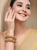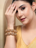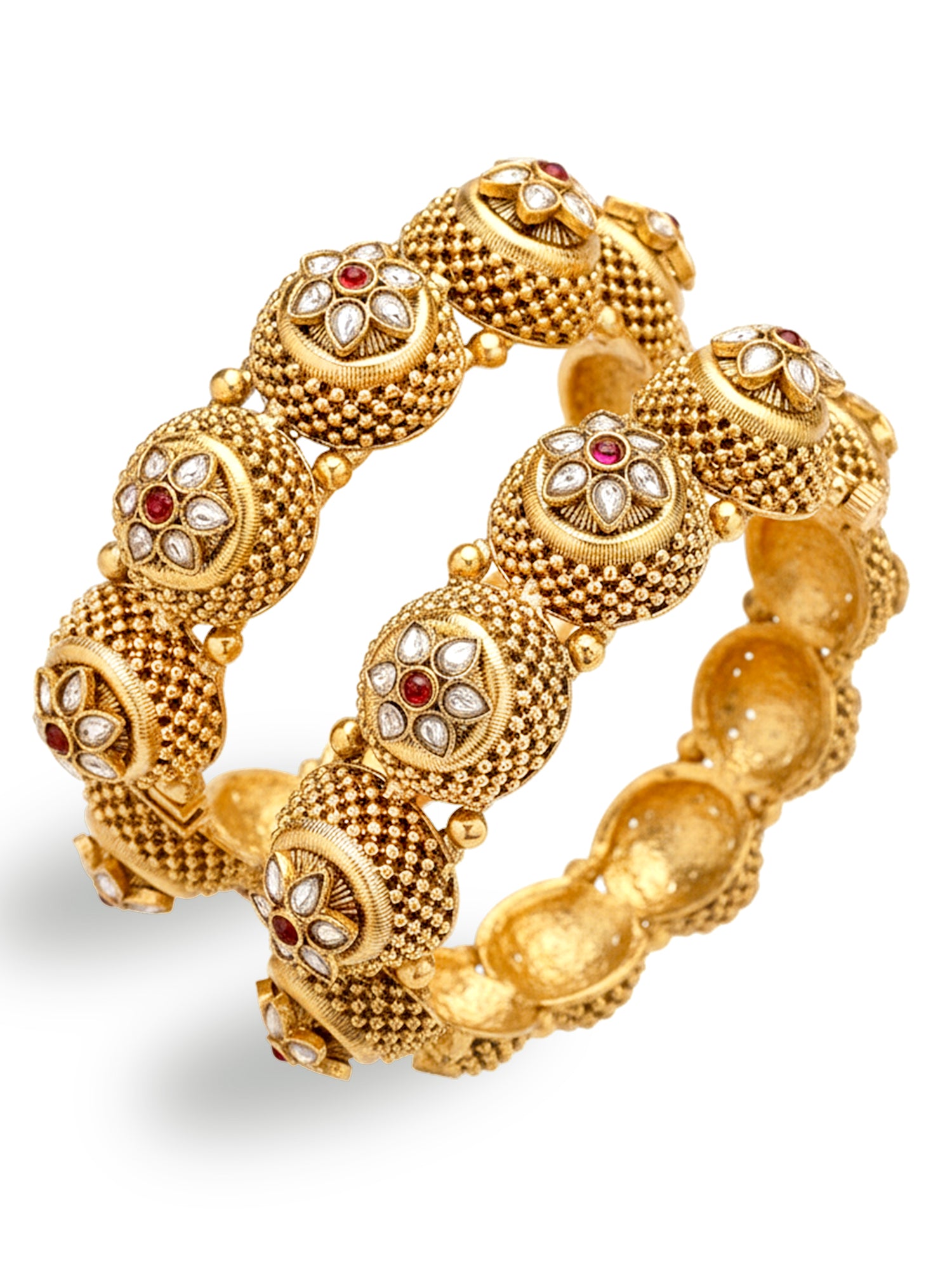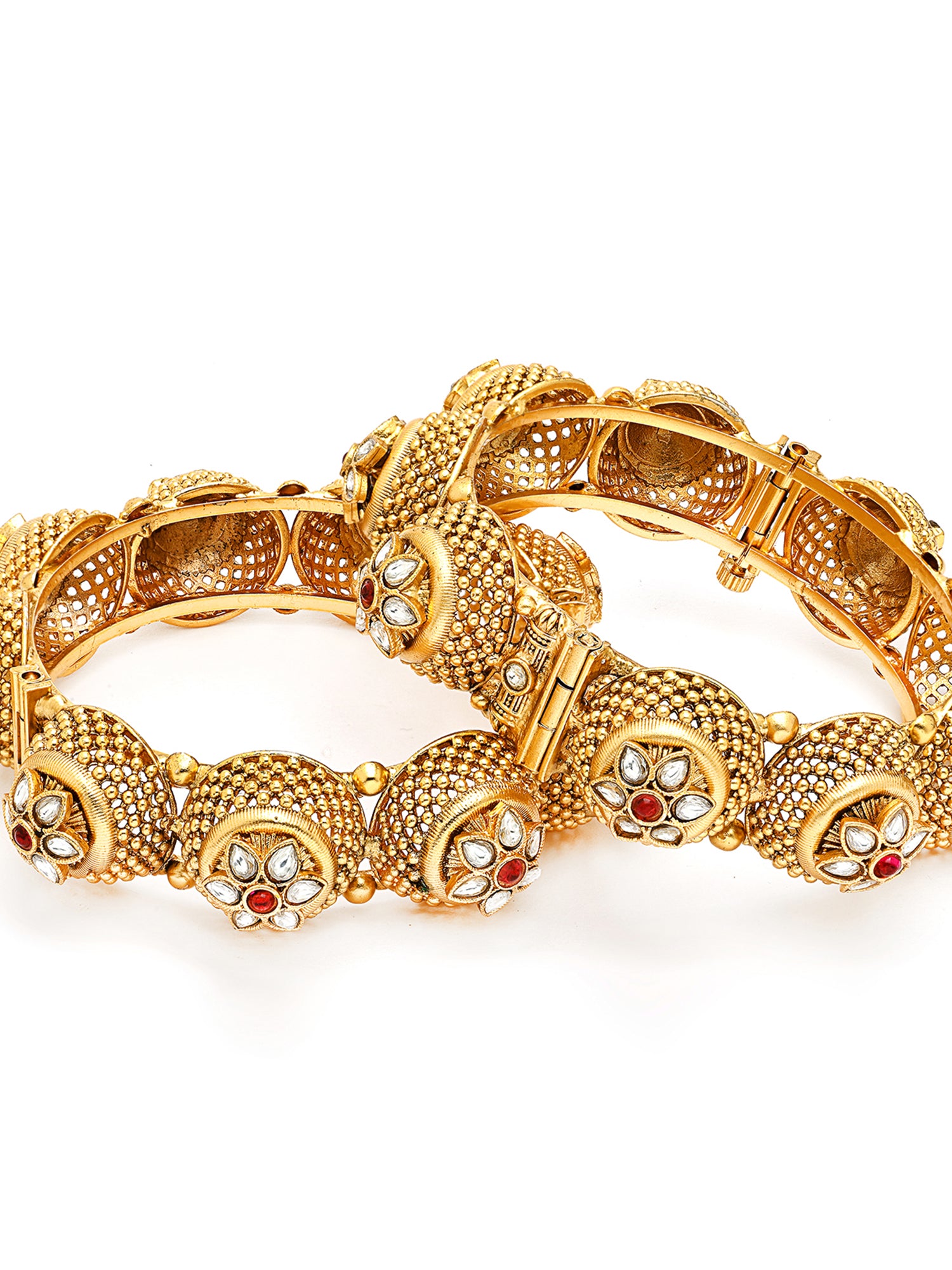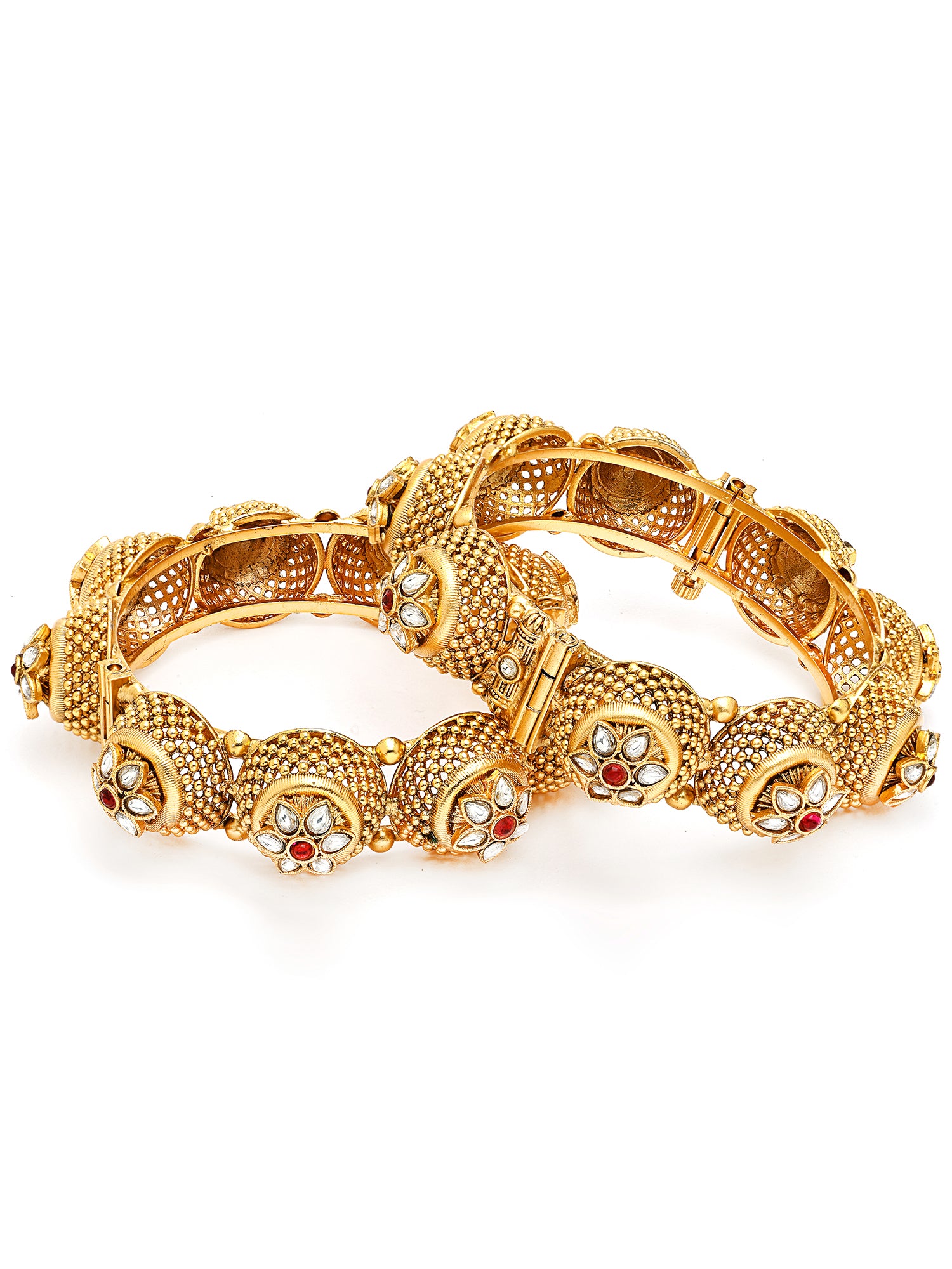 KARATCART Elegant Floral Design Gold-Plated Red & White Stone Rajwadi Bangles for Women
