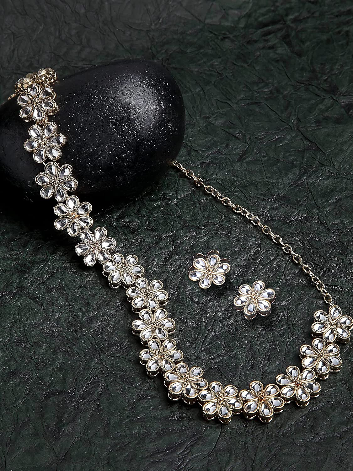- Karatcart Gold Plated Floral Chain Hairband with Earrings Combo for Women. Our products are designed with high-quality Kundan Stones and these products are enhanced with plating that are skin-friendly & with love to reach your heart.