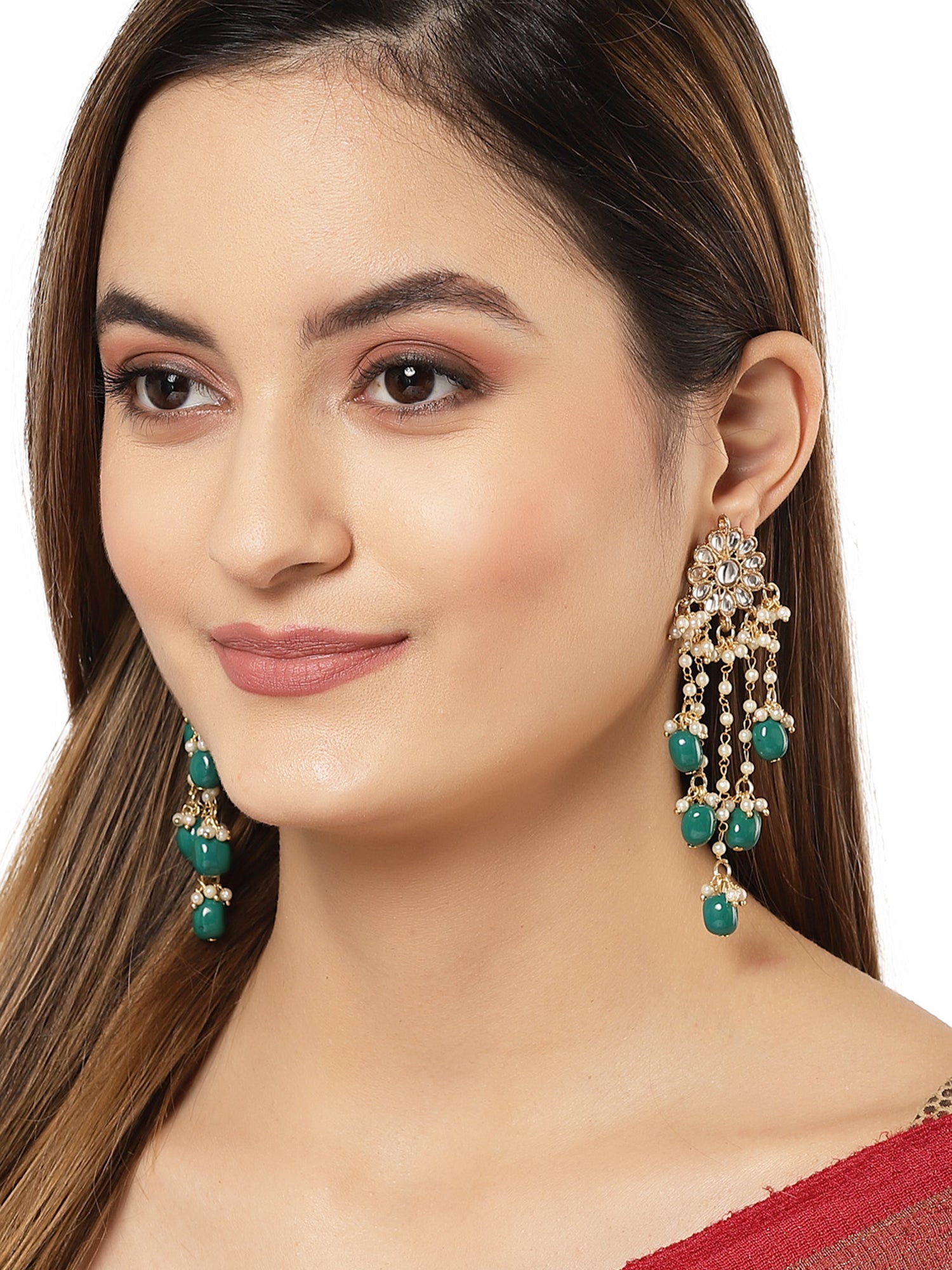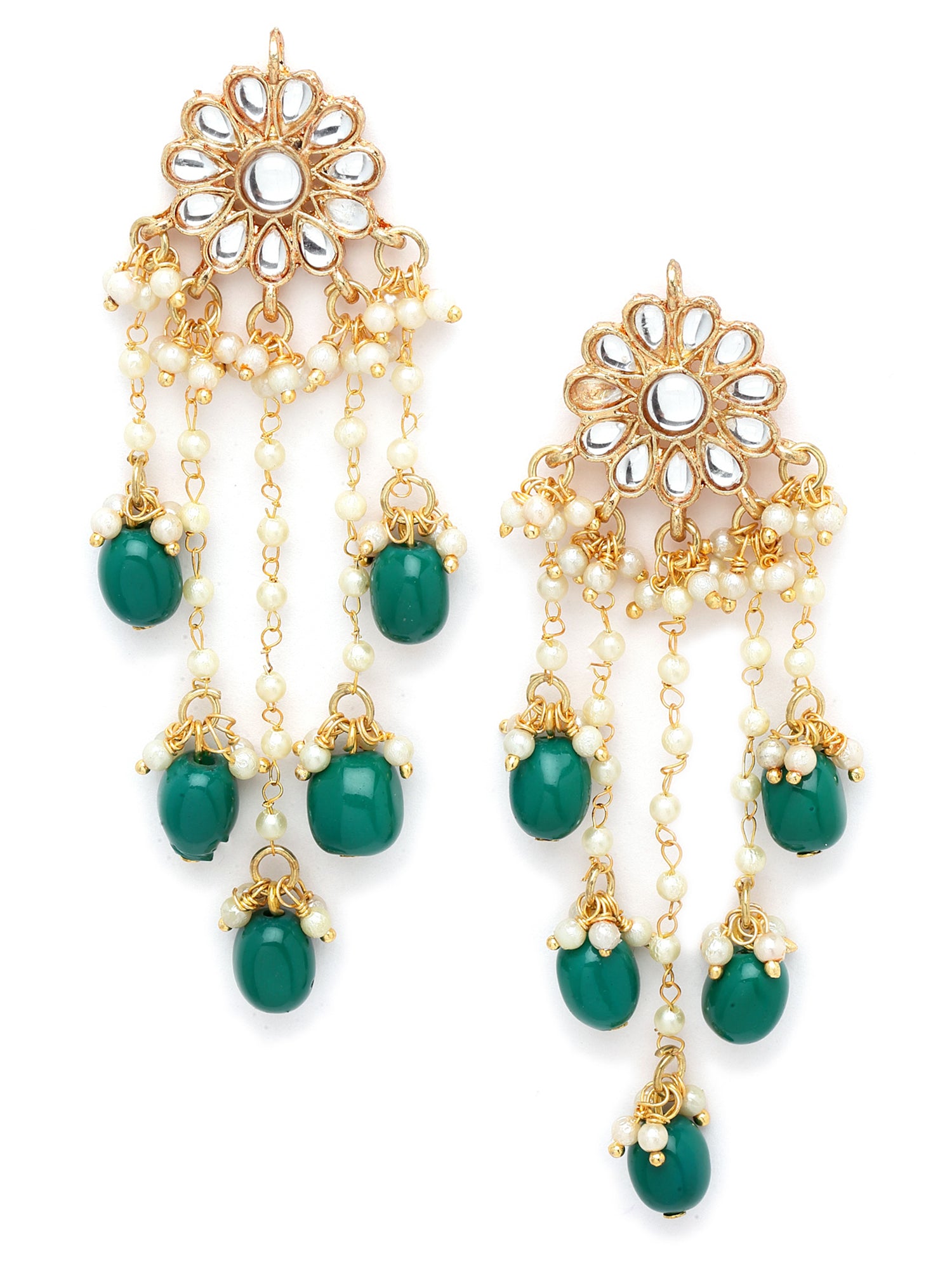 - Karatcart Gold Plated Green Tumble Kundan Tassel Earringsfor Women. It is made with high-quality Kundan Stones which makes them very skin-friendly. Perfect for Weddings, Parties, Festivals, and Traditional Occasions. Gracefully pair Saree, Kurti, or any Indo-western outfit to enhance your look. These are made from toxic-free materials which are Anti-Allergic and Safe for the skin.