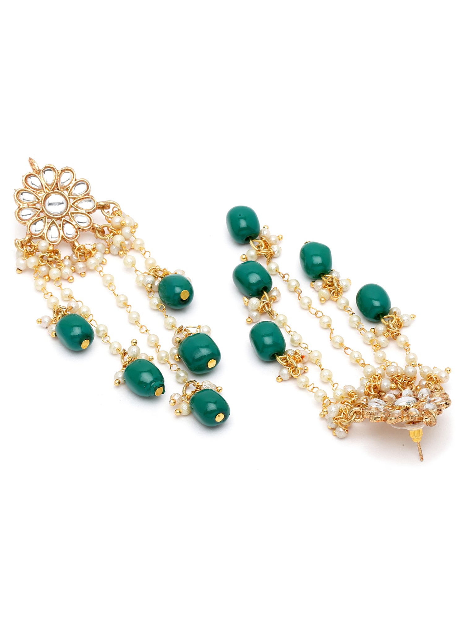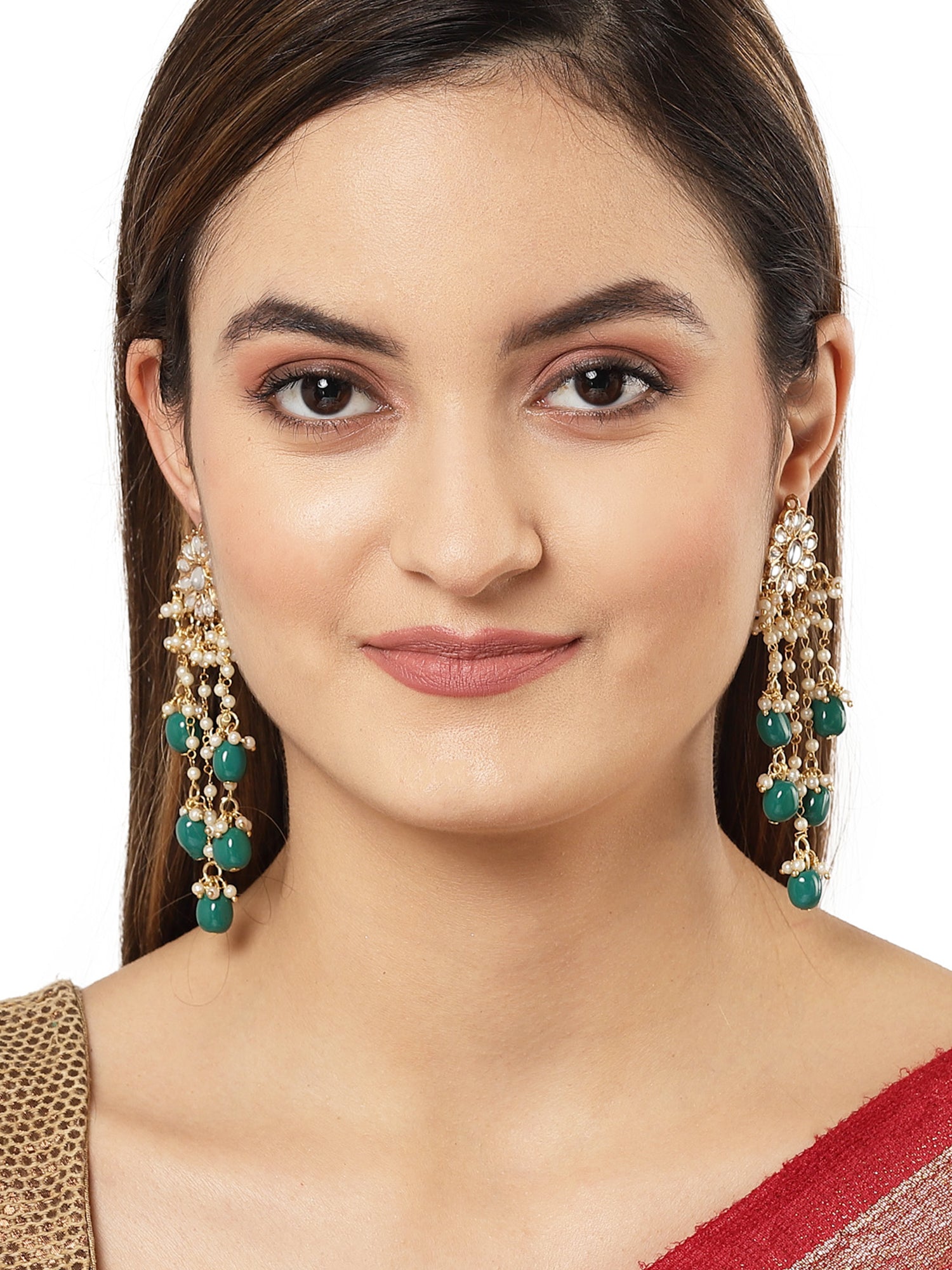 Karatcart Gold Plated Green Tumble Kundan Tassel Earrings for Women