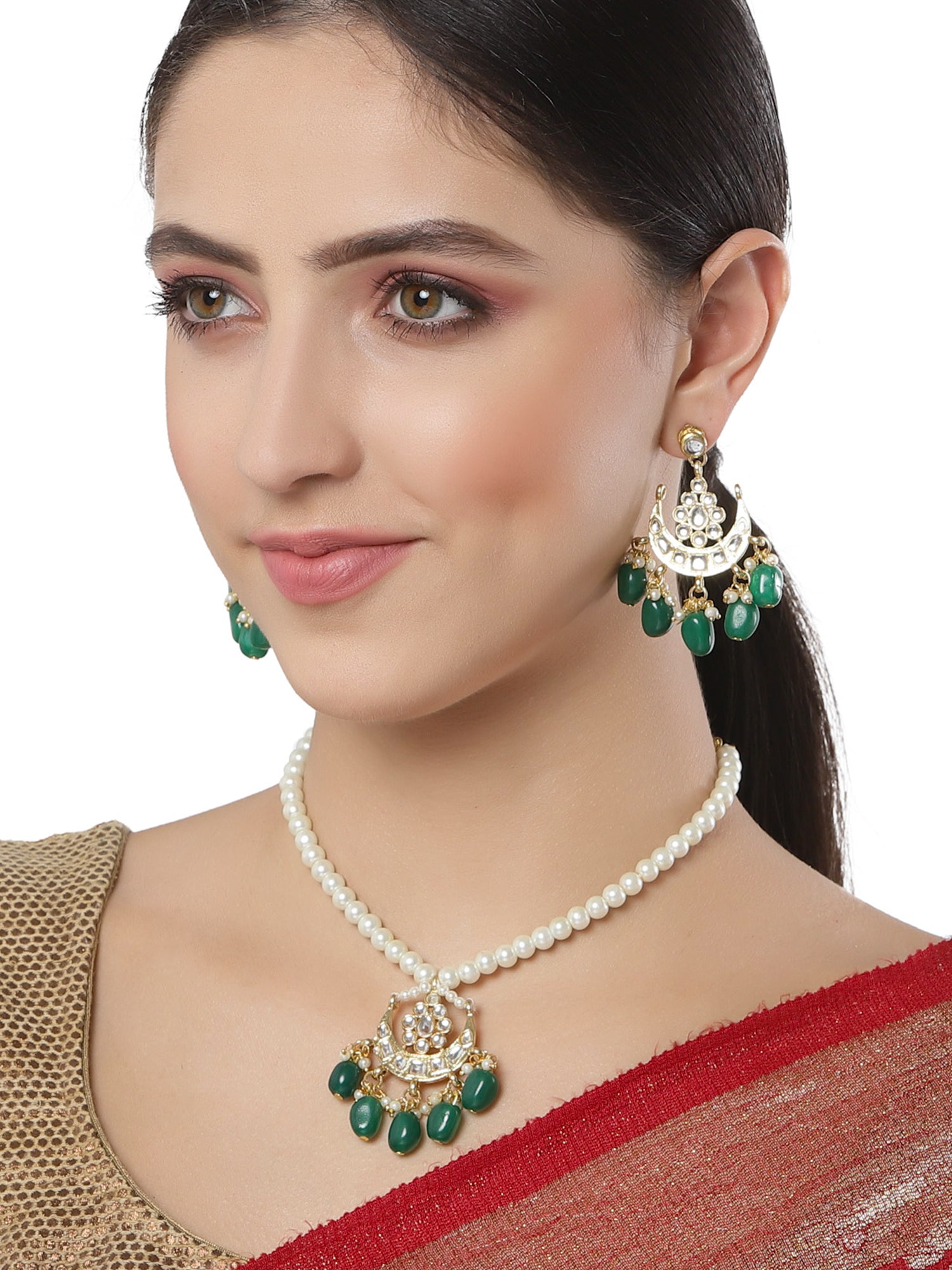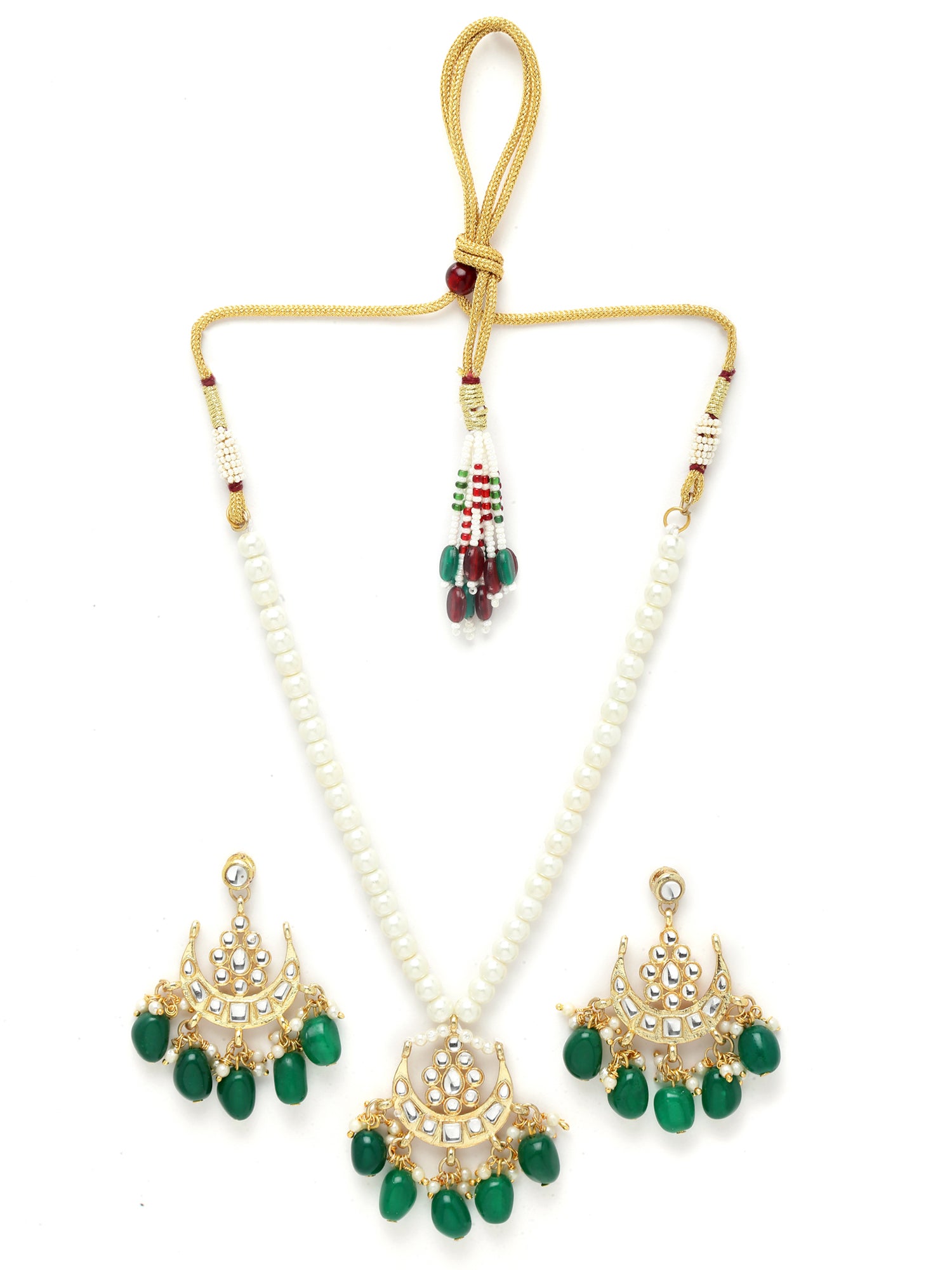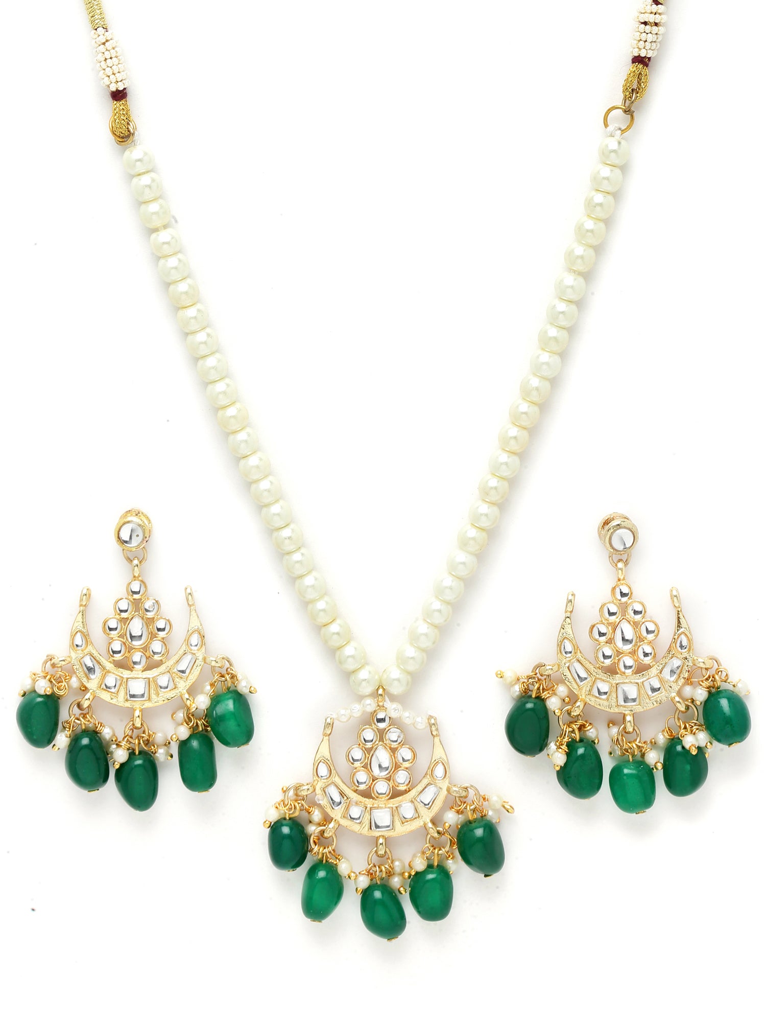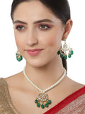 Karatcart Gold Plated Green Tumble Moon Shape Kundan Neckalce Set
