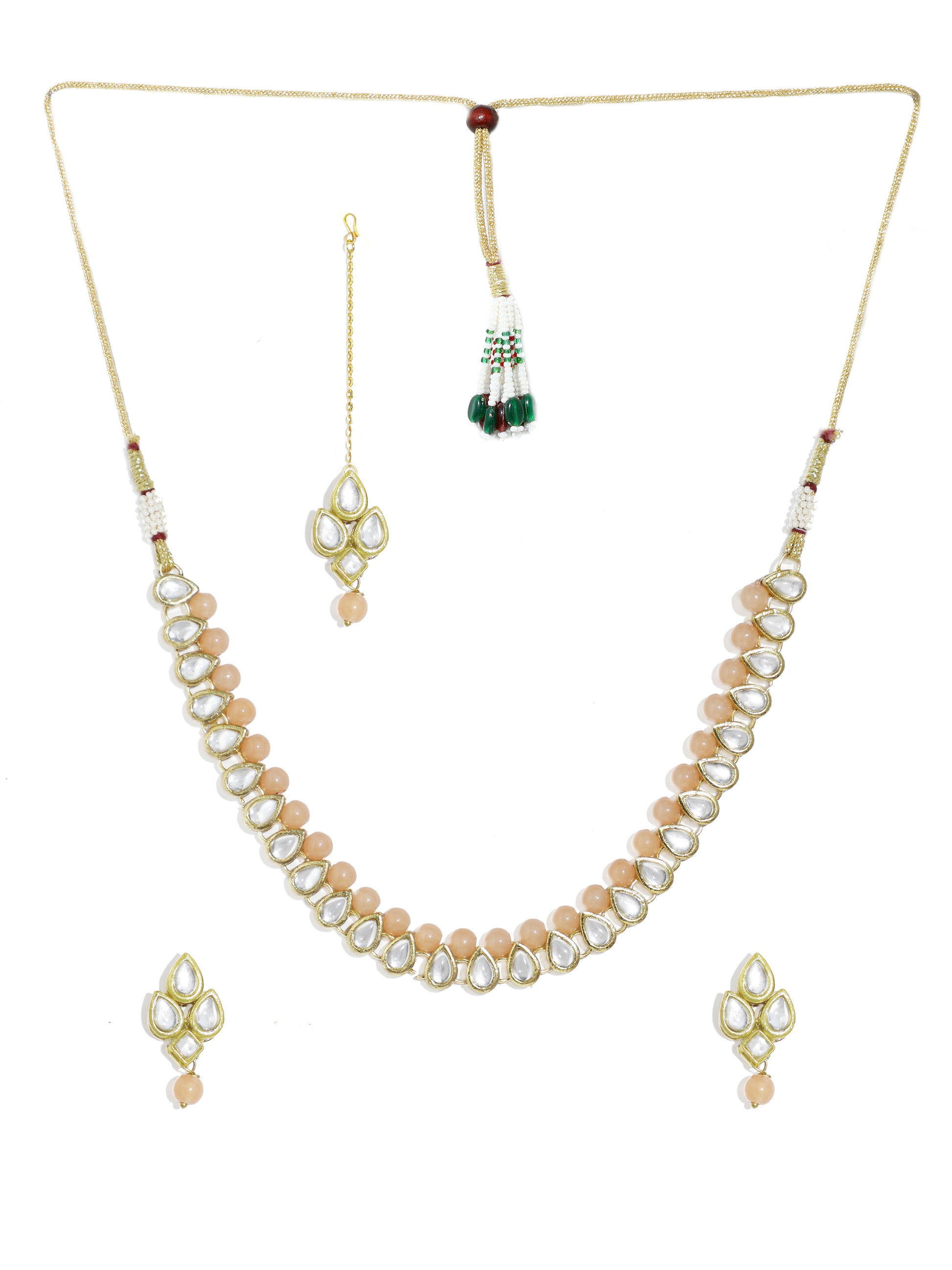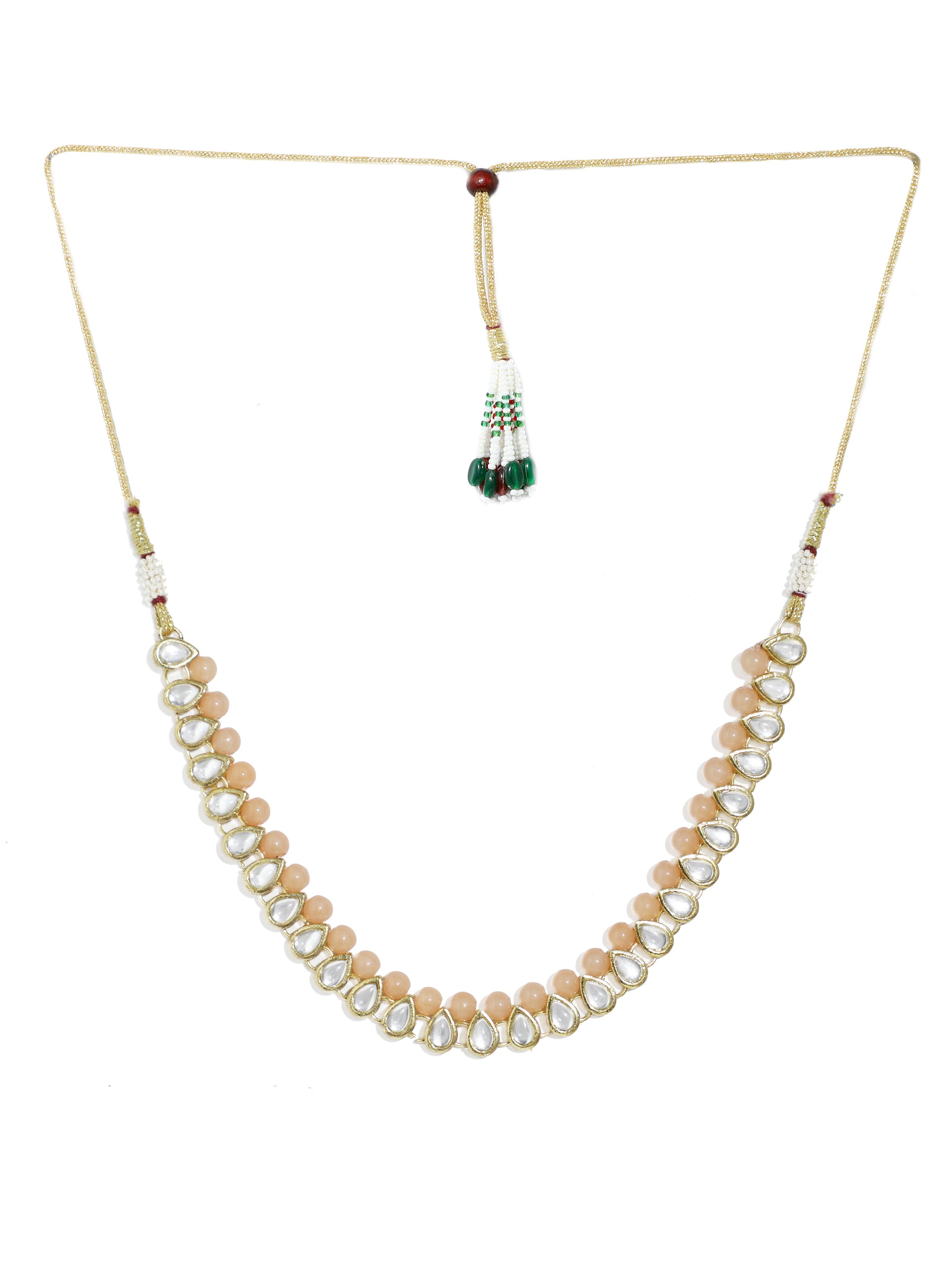 - Karatcart Gold-Plated Handcrafted Kundan & Peach Beads Studded Choker Necklace Set. It's Five Layer Micro Gold Plated and Embellished with Elegant Kundan for High Durability. Intricate high polish creates glamorous reflections and adds a luxurious look. Perfect for Weddings, Festivals, Traditional Occasions. Best when paired with any Indian outfit.